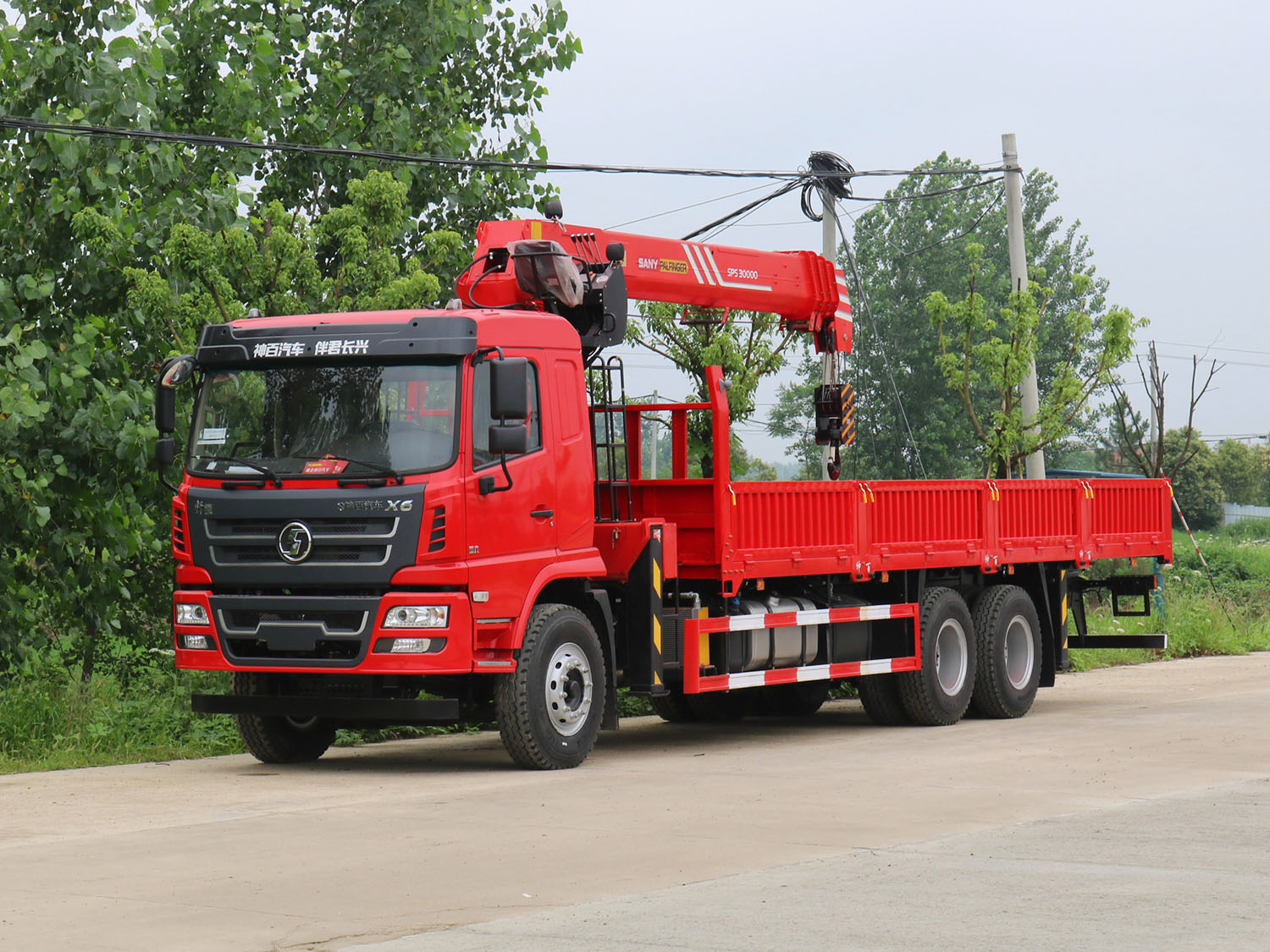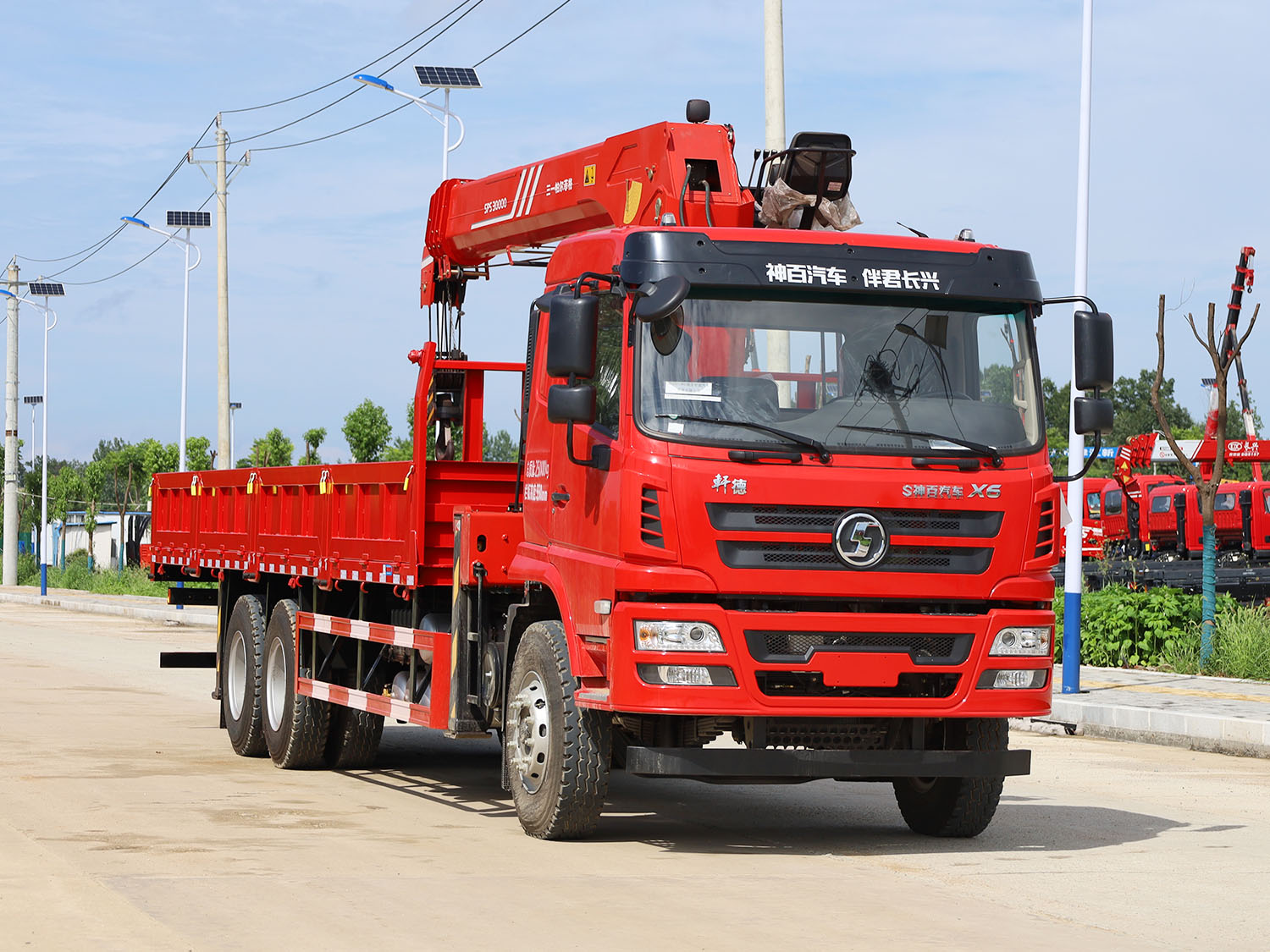 陜汽軒德X6后雙橋上裝三一12噸直臂式吊機