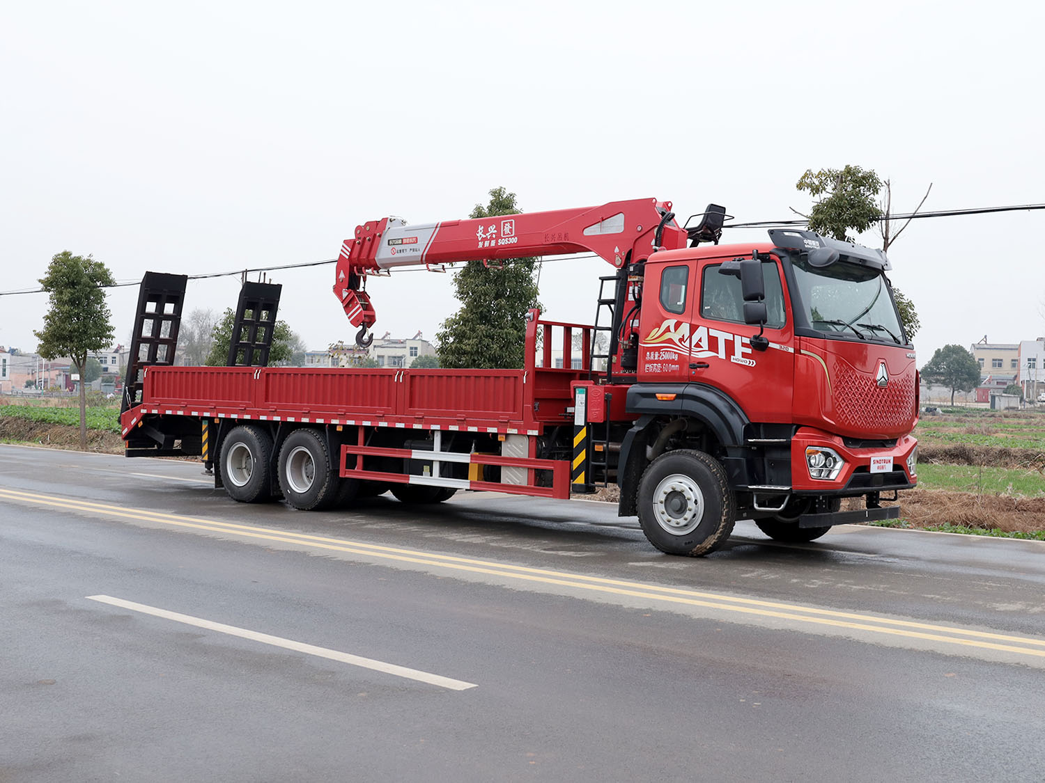東風(fēng)華神F5駕駛室后雙橋上裝三一12噸直臂式吊機(jī)