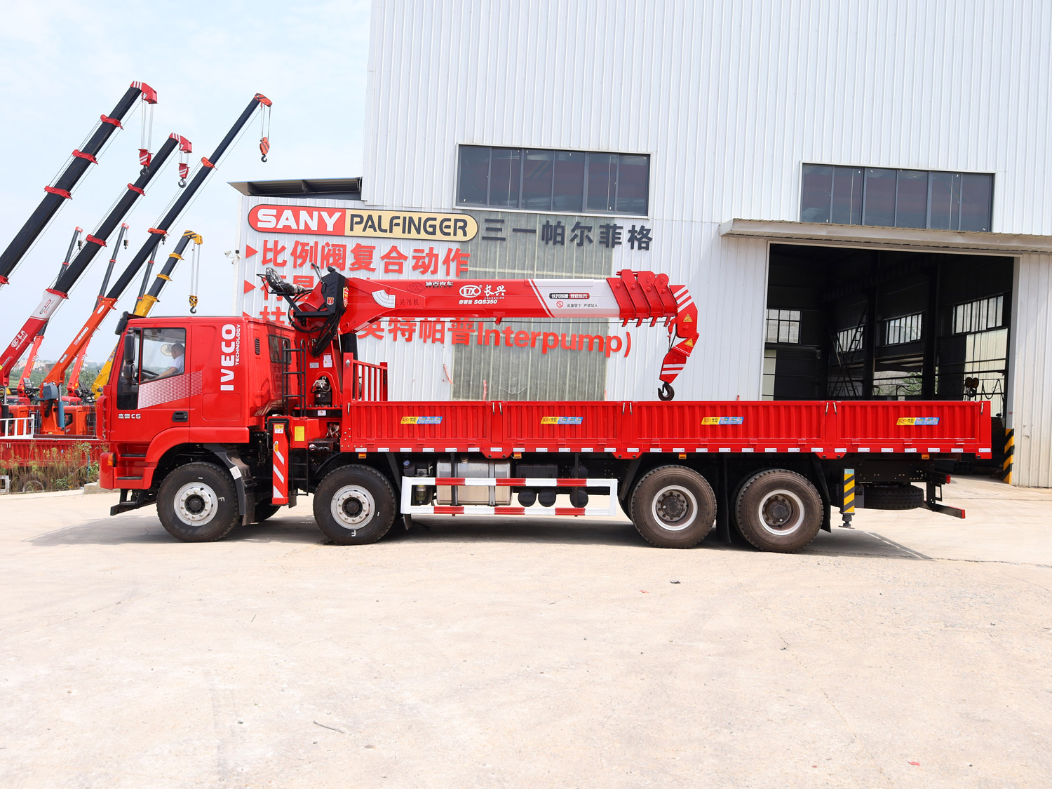 陜汽德龍新M3000駕駛室前四后八上裝長興14噸直臂式吊機(jī)