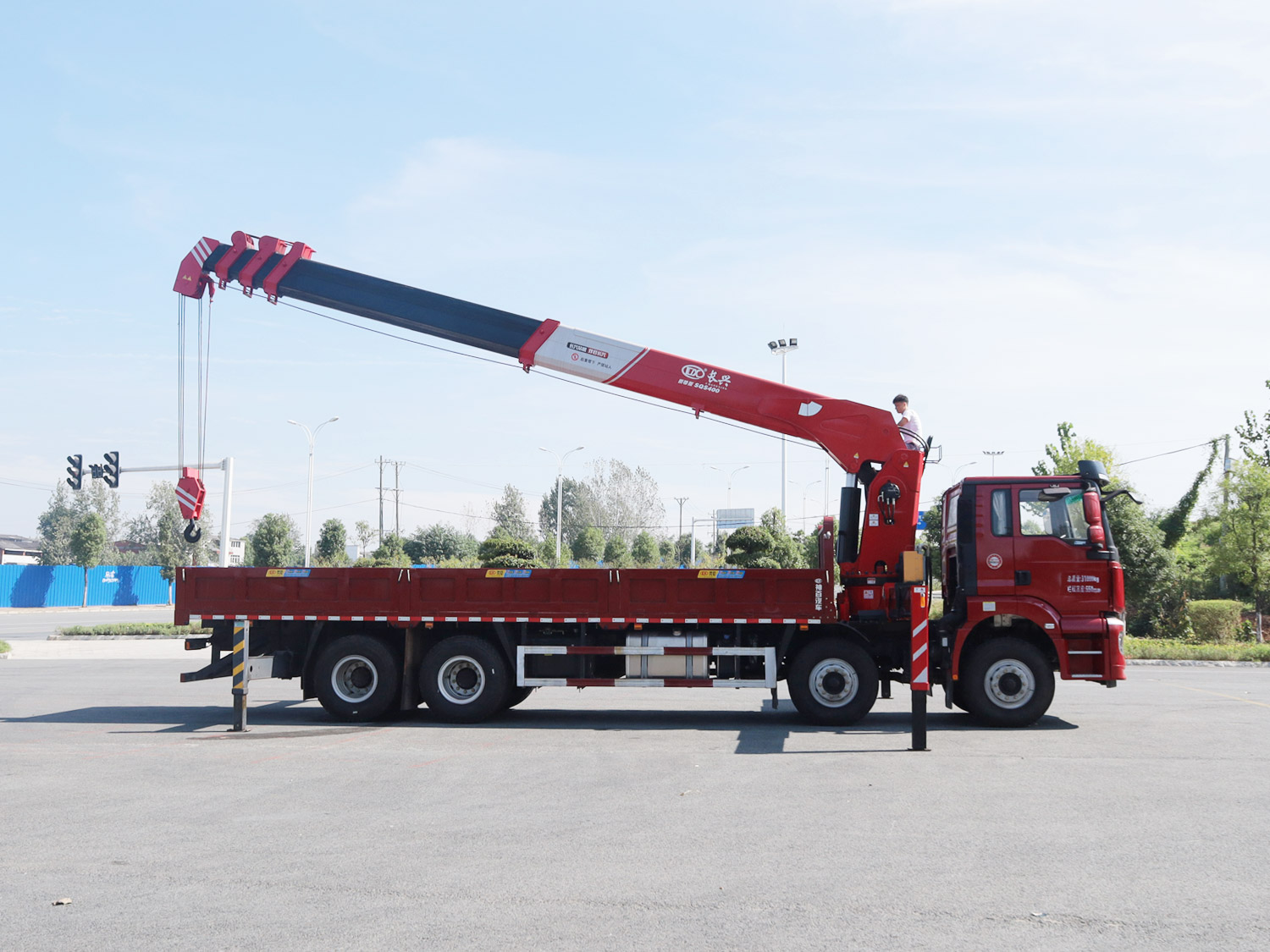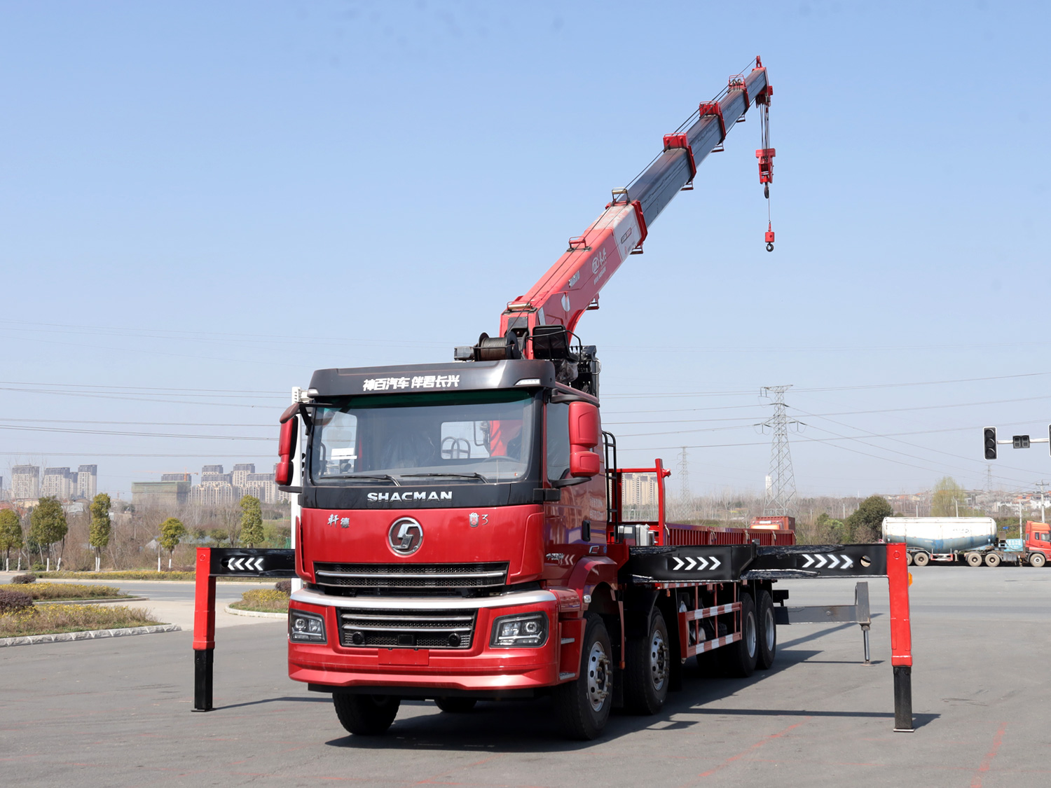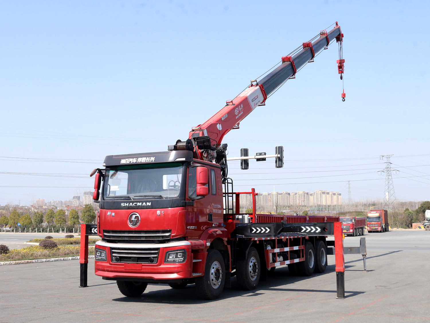 陜汽德龍新M3000駕駛室前四后八上裝三一16噸直臂式吊機