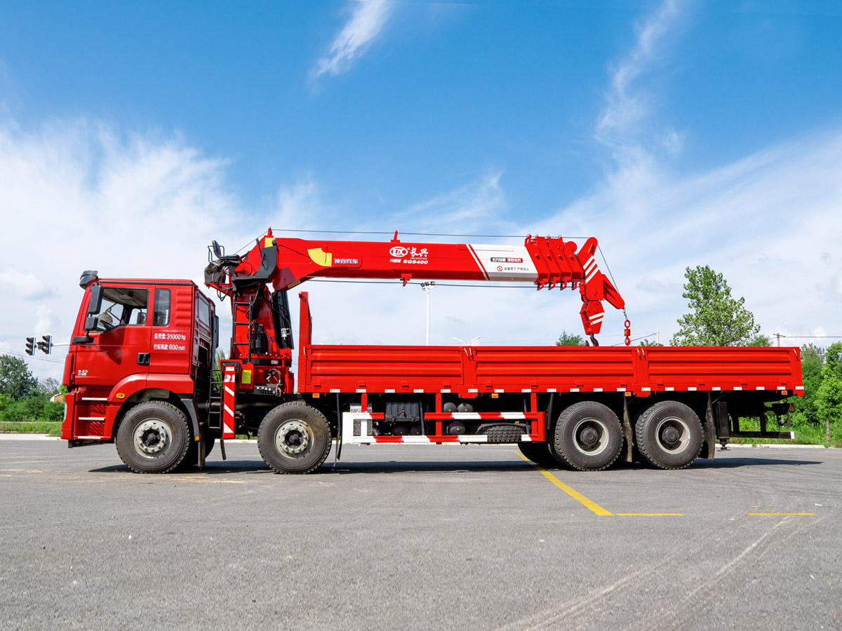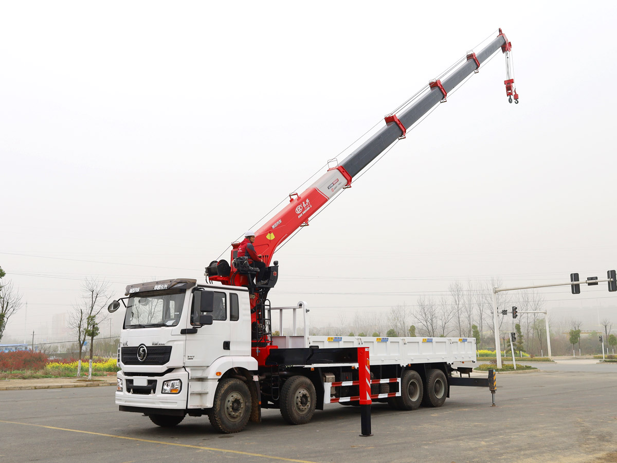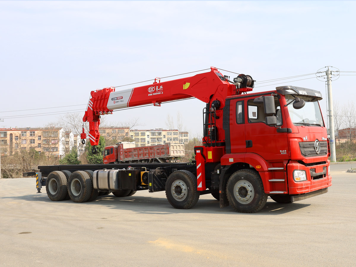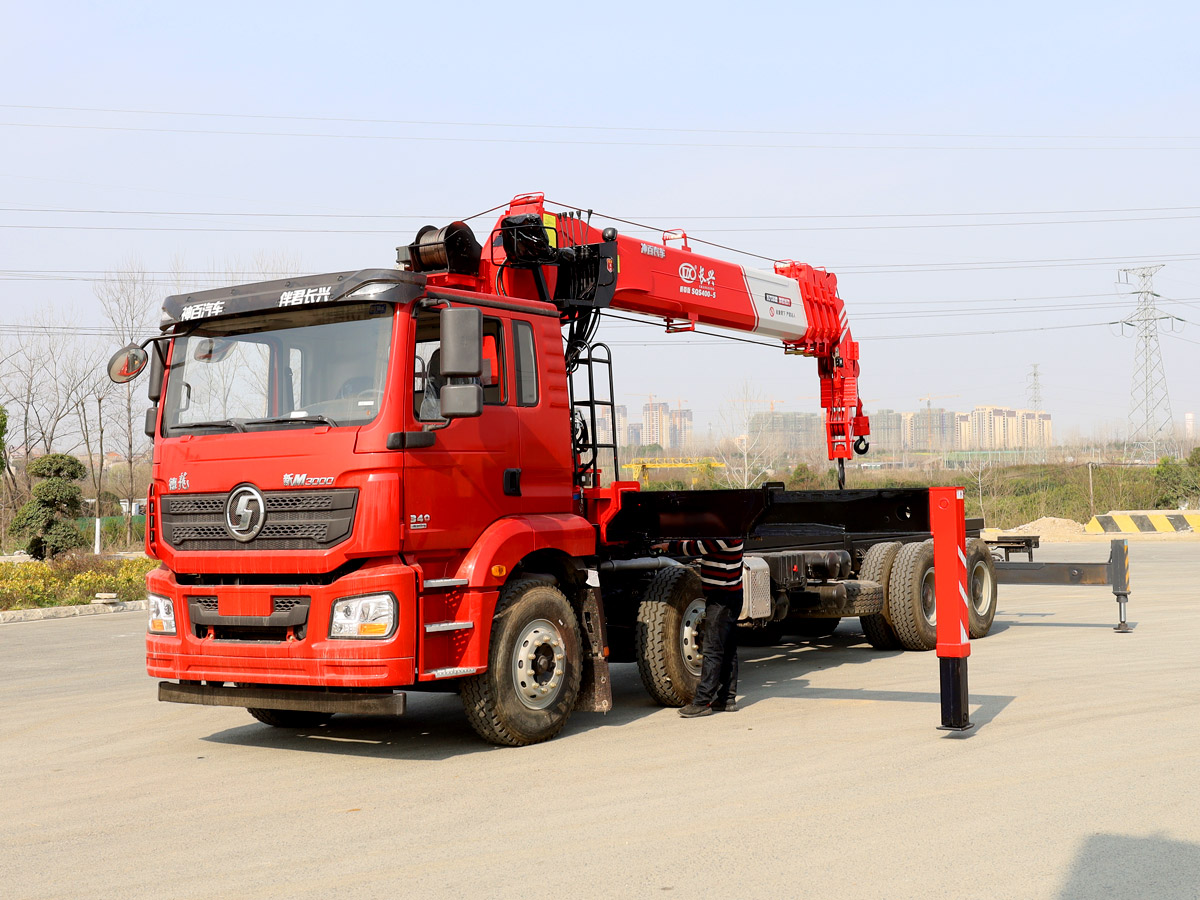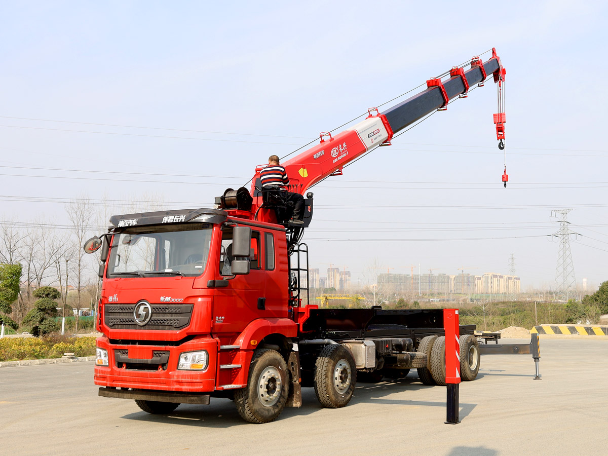 陜汽德龍新M3000駕駛室前四后八上裝長(zhǎng)興16噸直臂式吊機(jī)