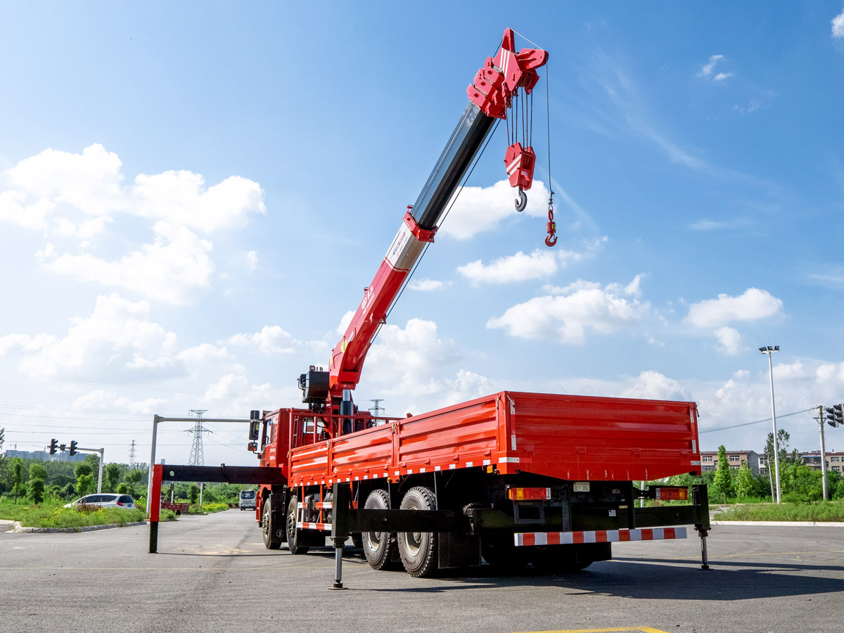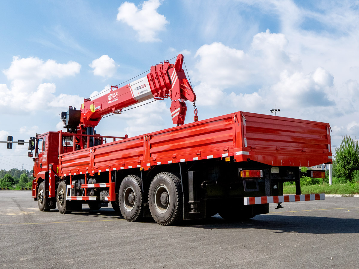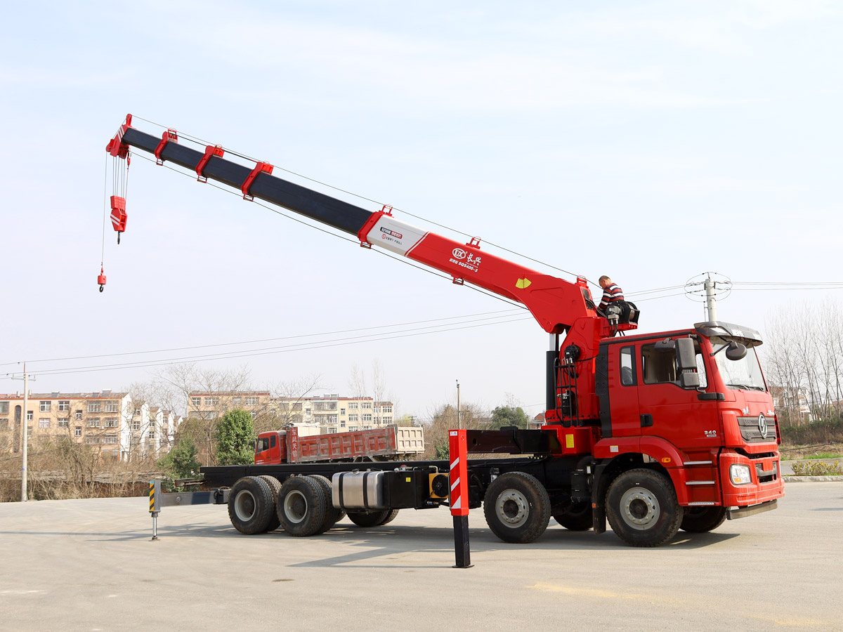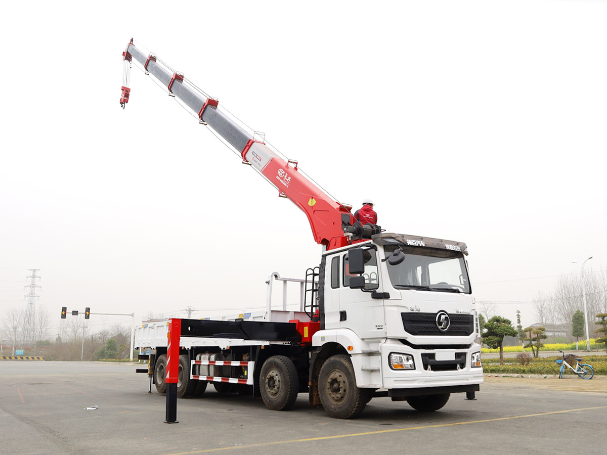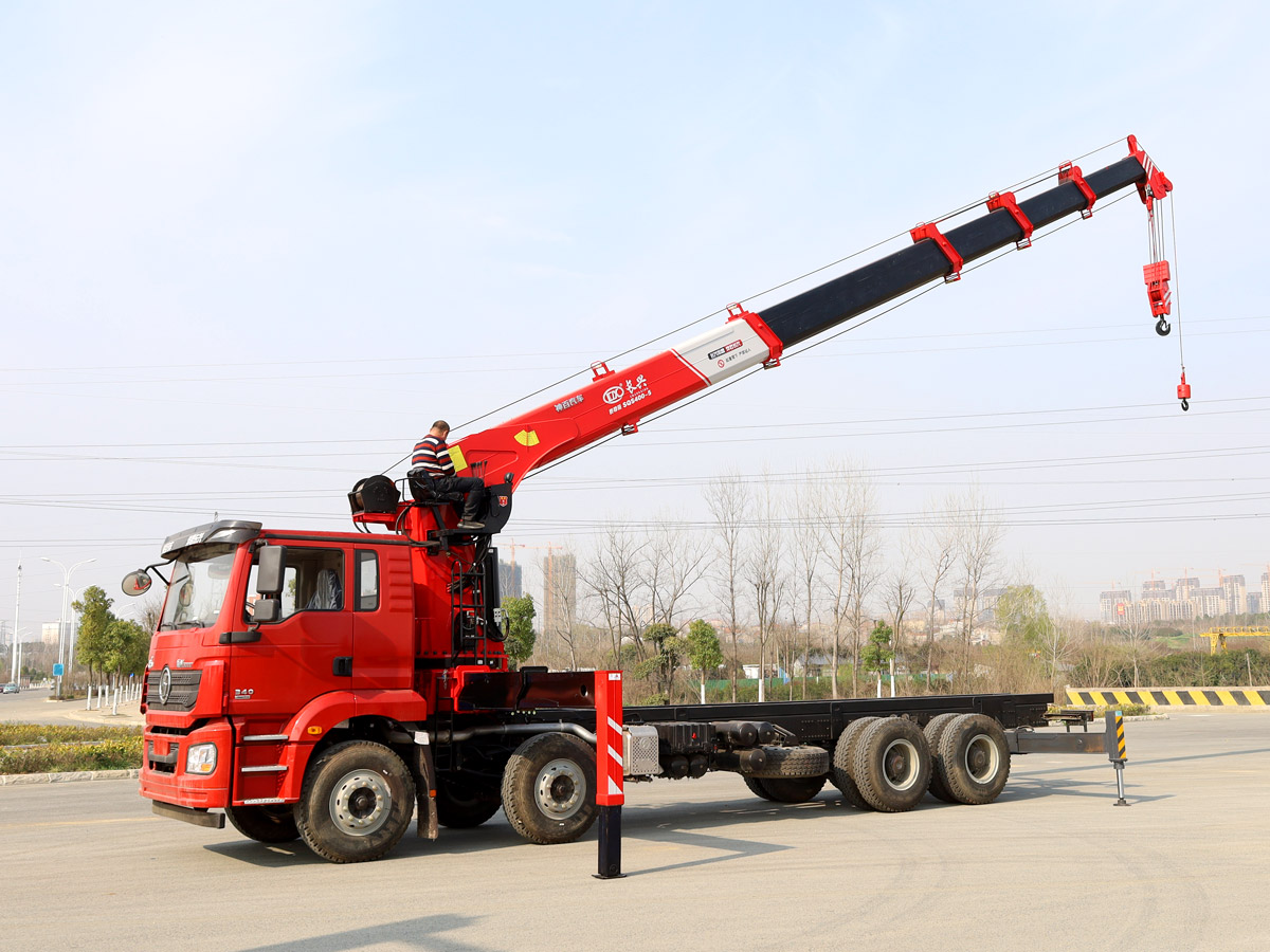 陜汽德龍新M3000駕駛室前四后八上裝長(zhǎng)興16噸直臂式吊機(jī)