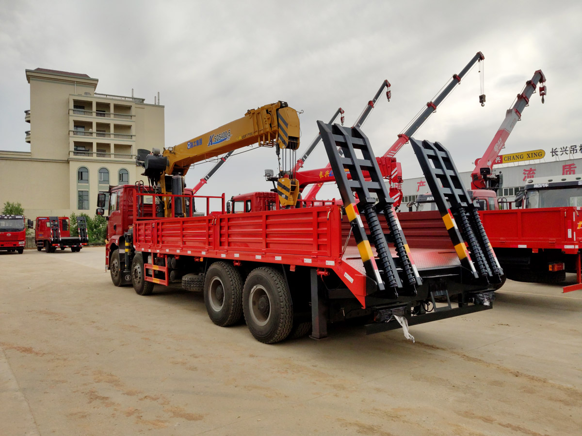 陜汽德龍新M3000駕駛室前四后八上裝長(zhǎng)興16噸直臂式吊機(jī)