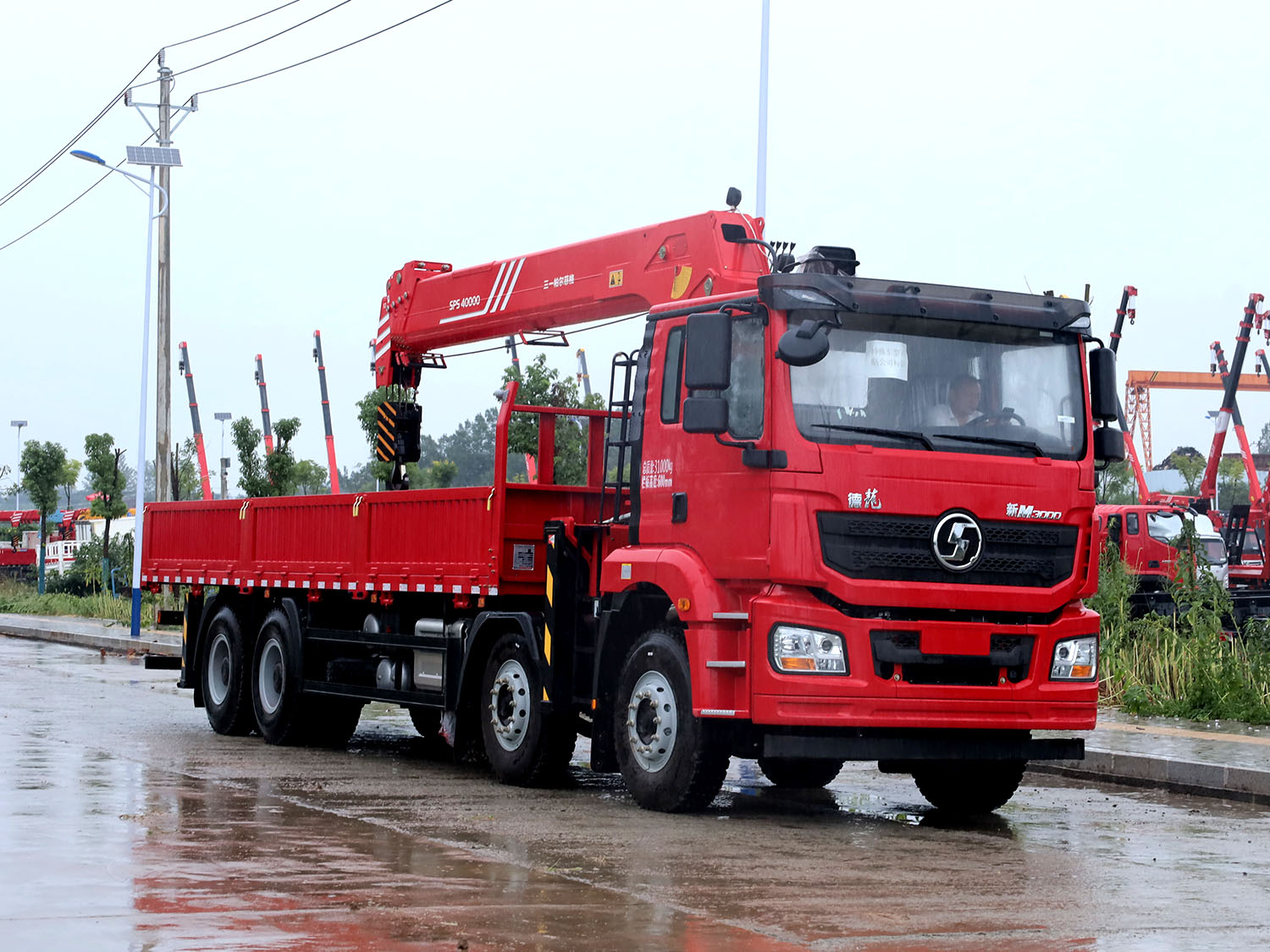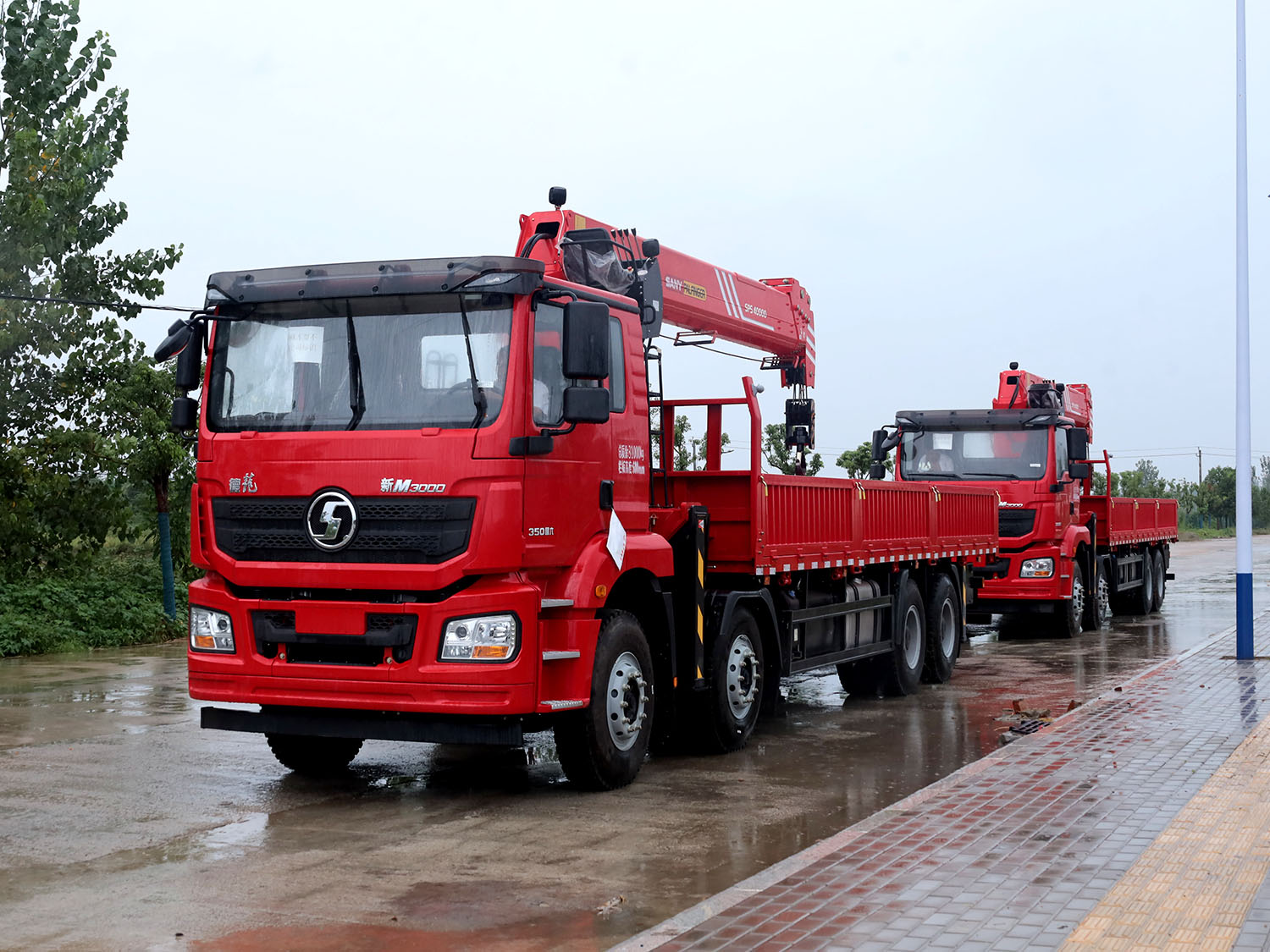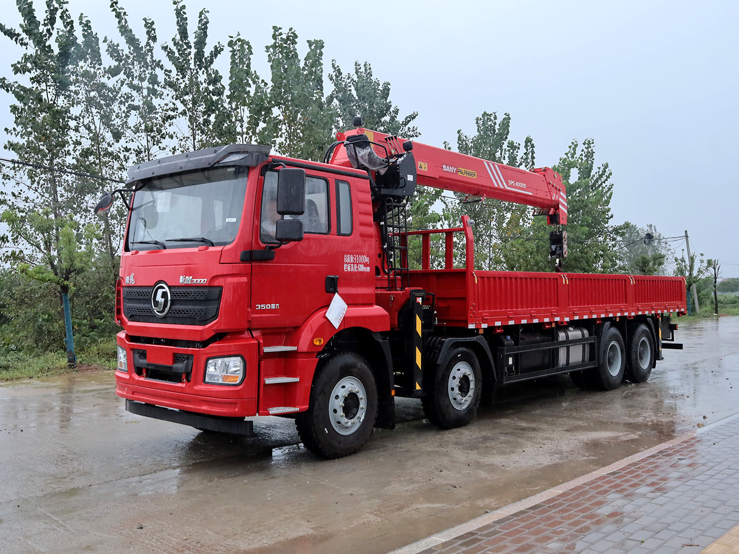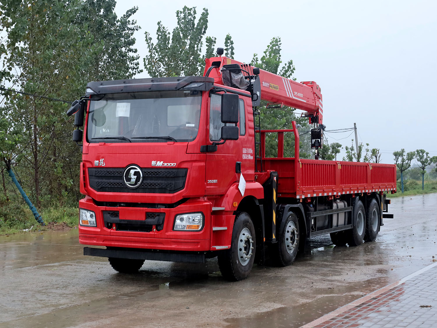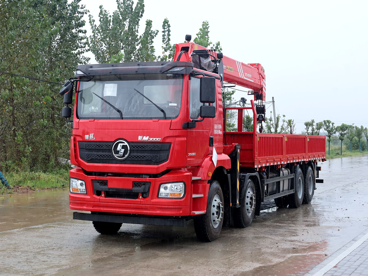 陜汽德龍新M3000駕駛室前四后八上裝三一16噸直臂式吊機(jī)