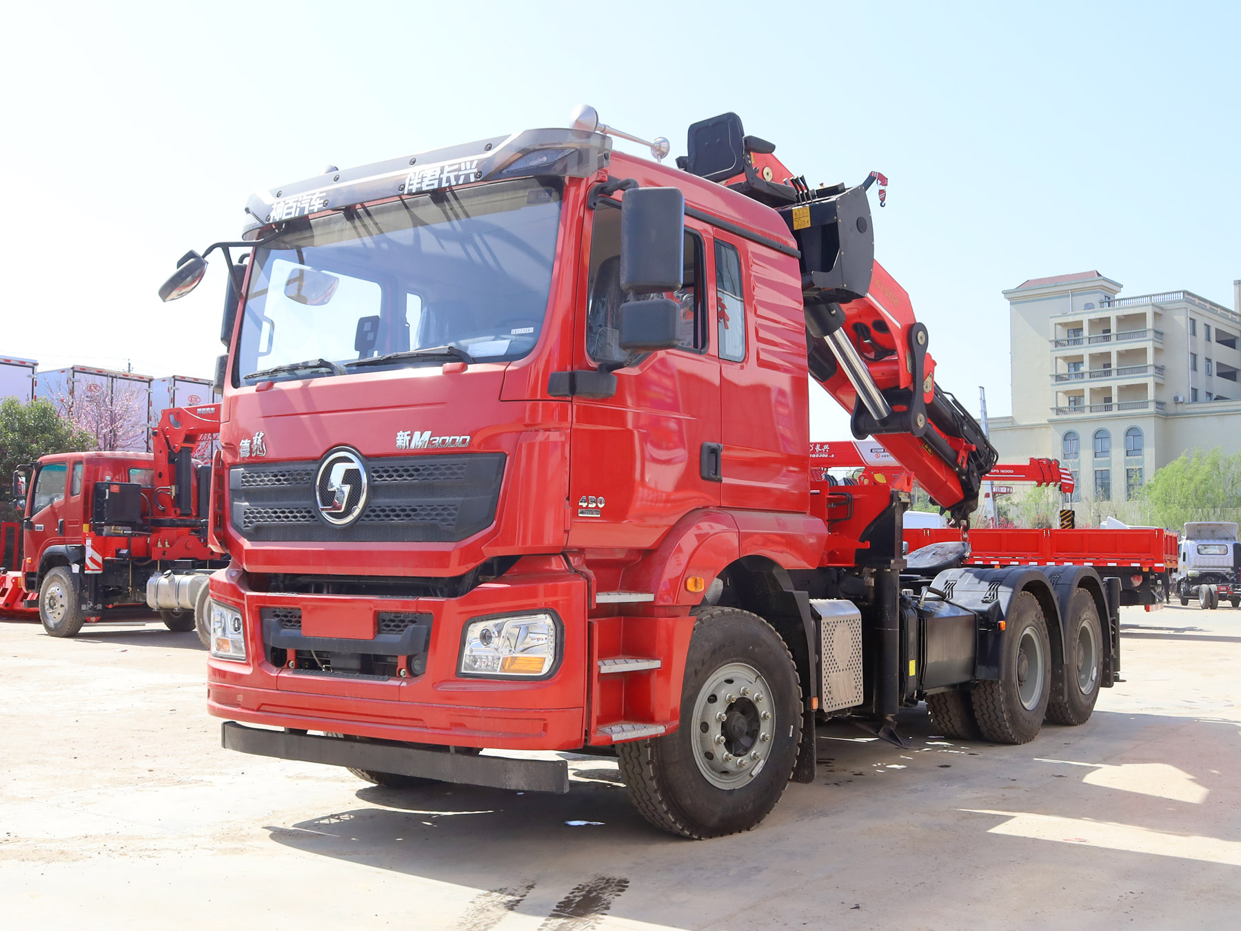 陜汽德龍新M3000駕駛室前四后八上裝三一16噸折臂式吊機(jī)