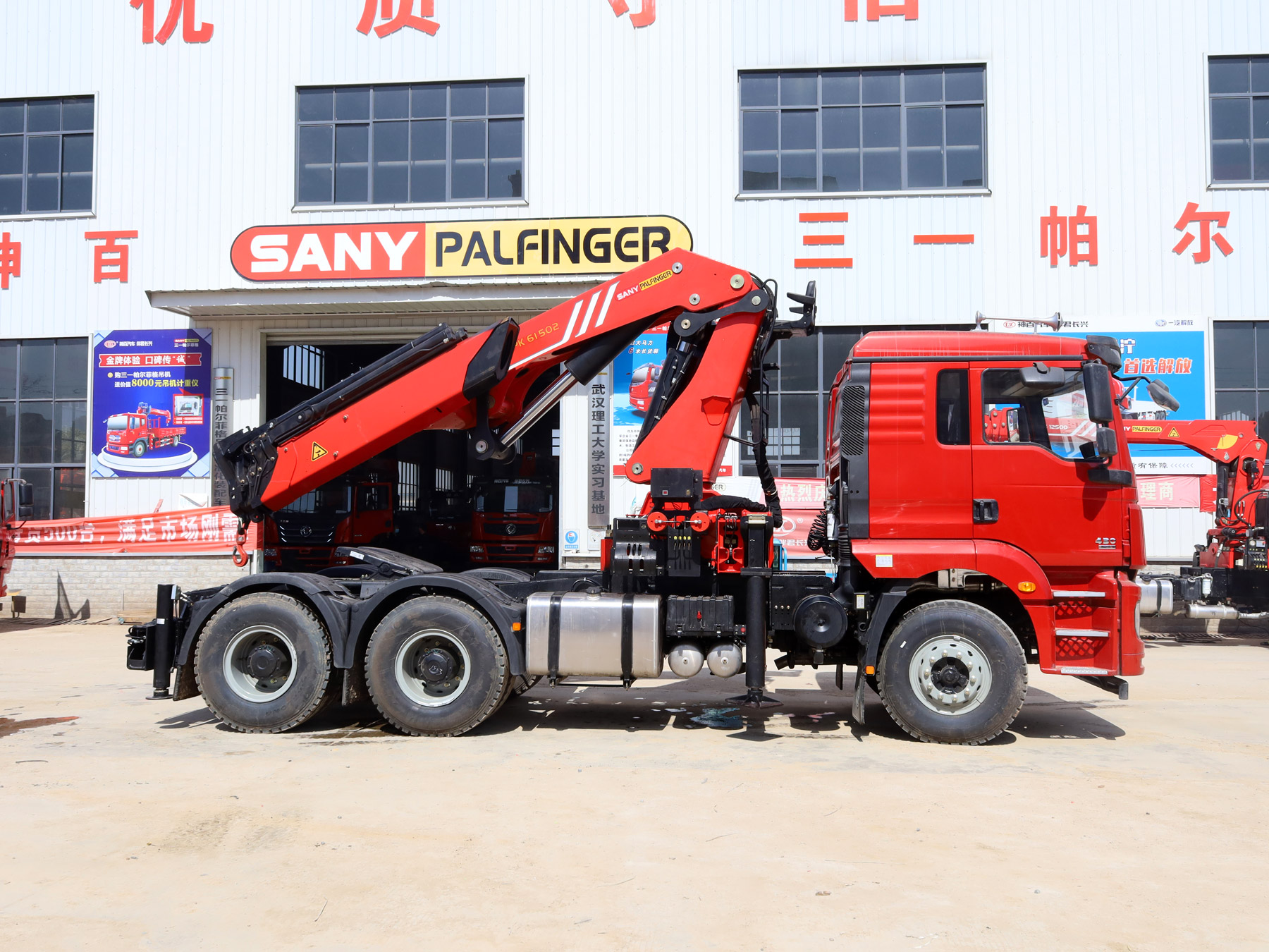 陜汽德龍新M3000牽引頭上裝三一25噸折臂式吊機(jī)
