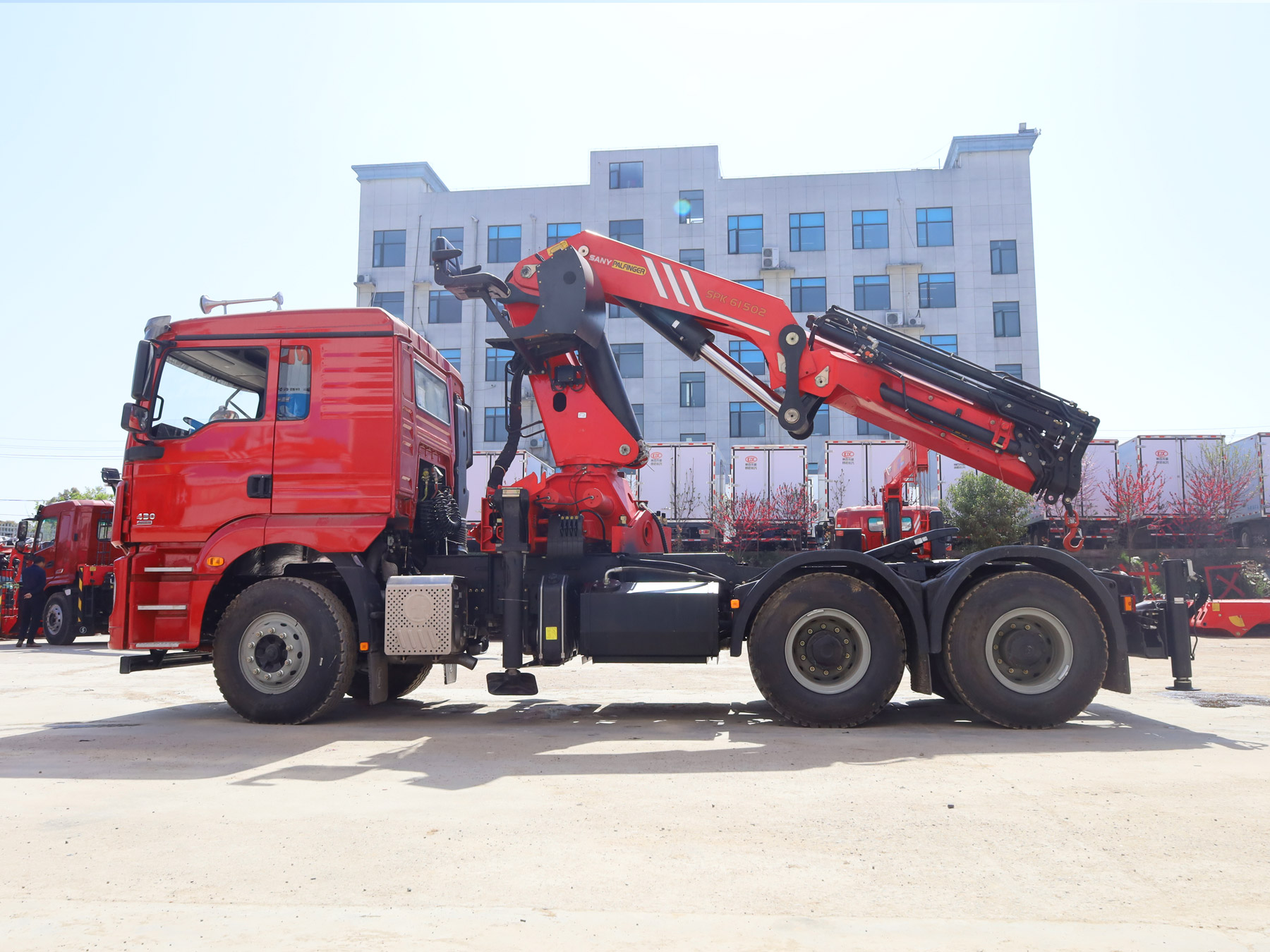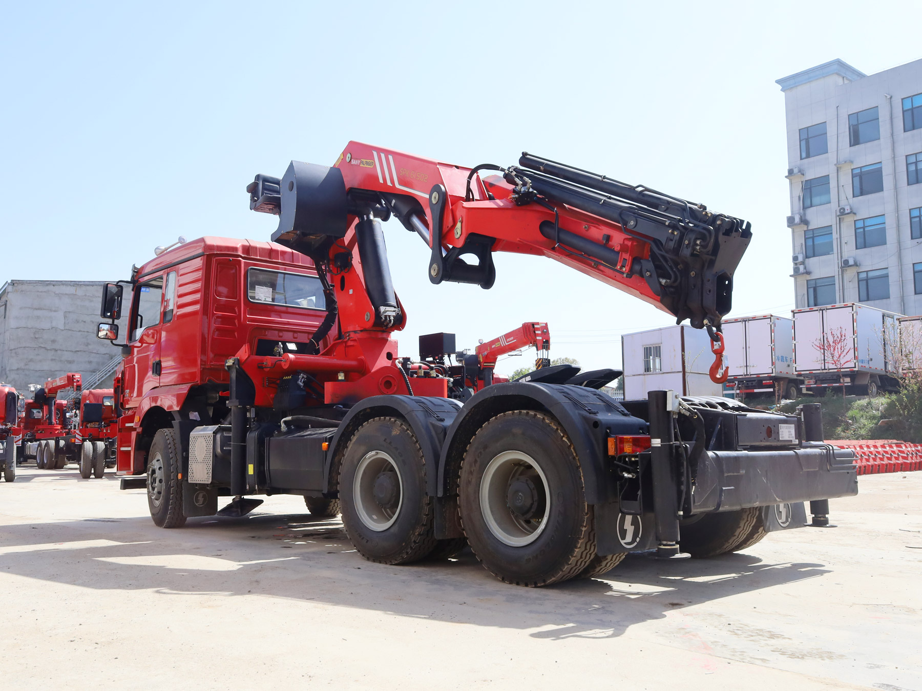 陜汽德龍新M3000牽引頭上裝三一19噸折臂式吊機(jī)
