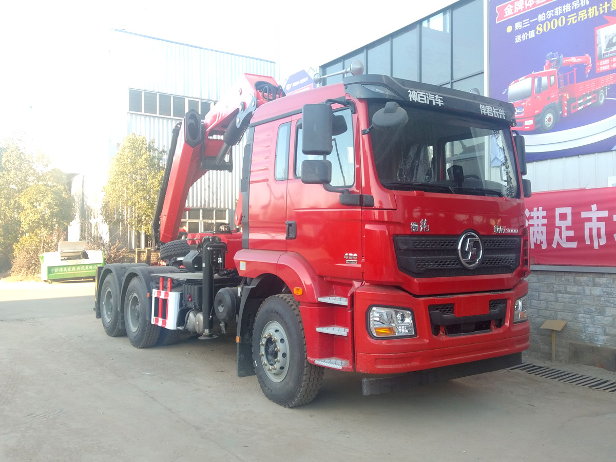 陜汽德龍新M3000駕駛室前四后八上裝三一16噸折臂式吊機(jī)