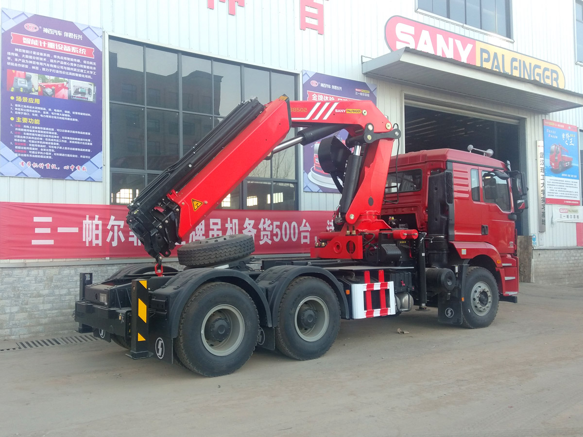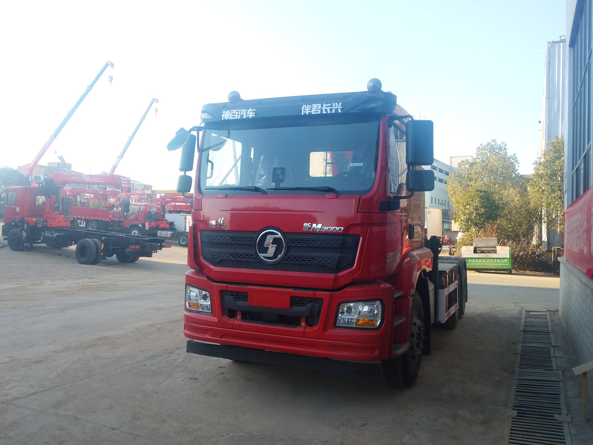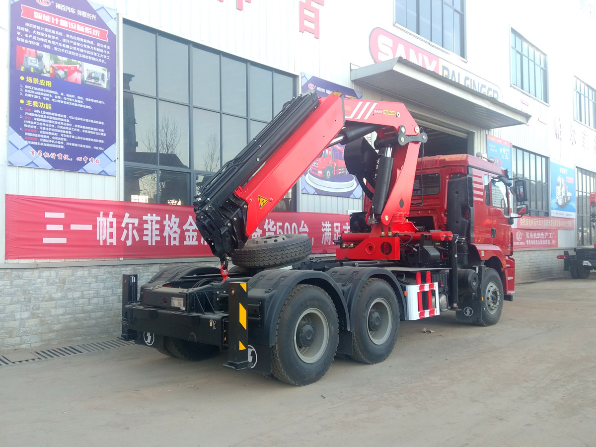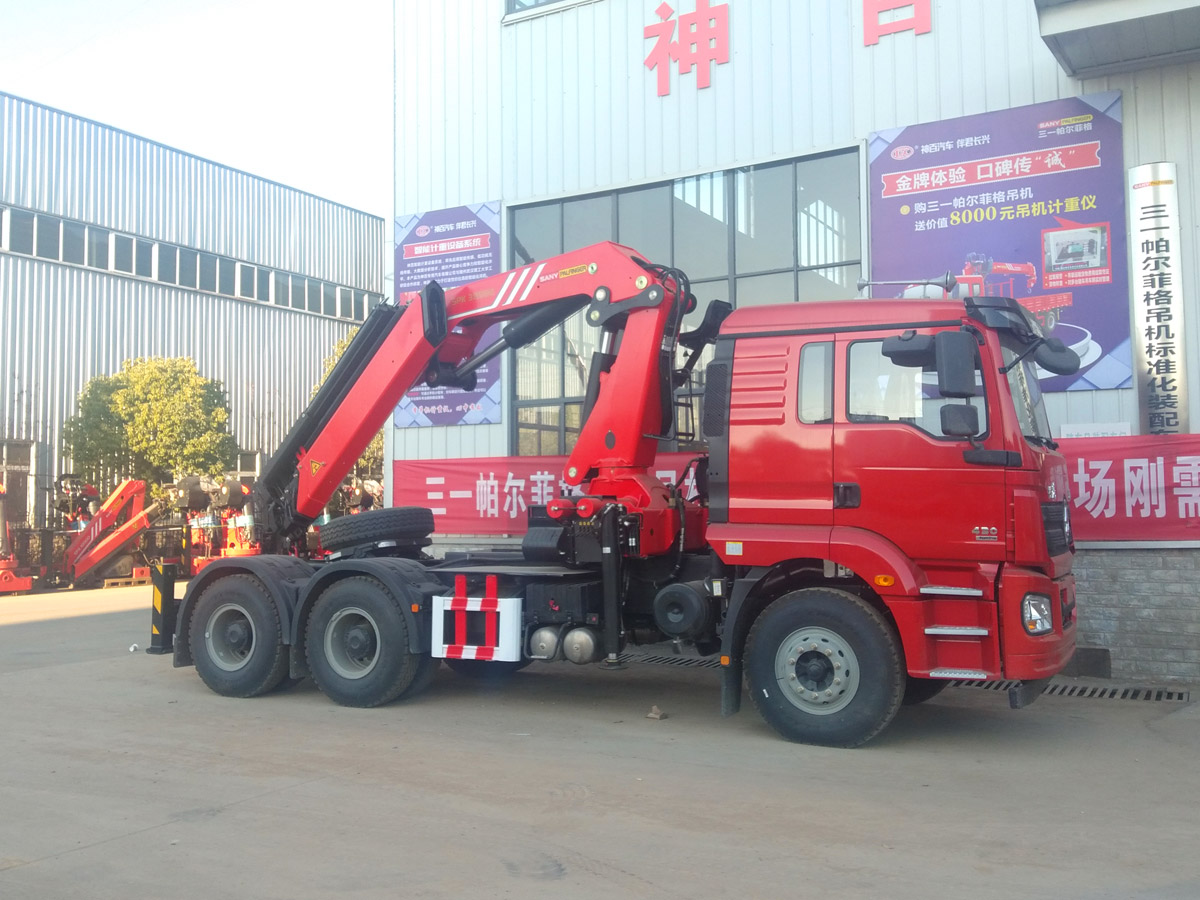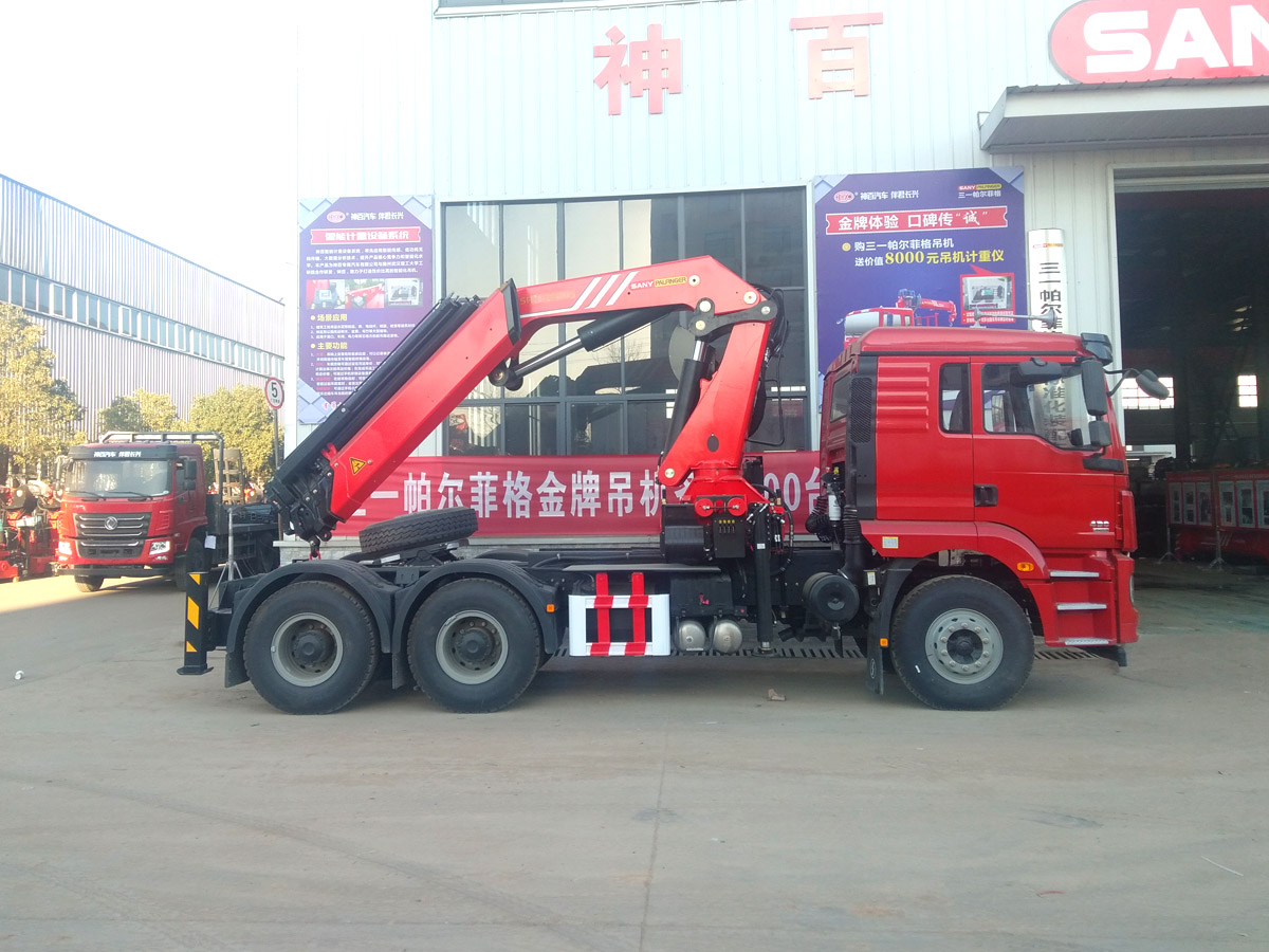 陜汽德龍新M3000牽引頭上裝三一19噸折臂式吊機(jī)