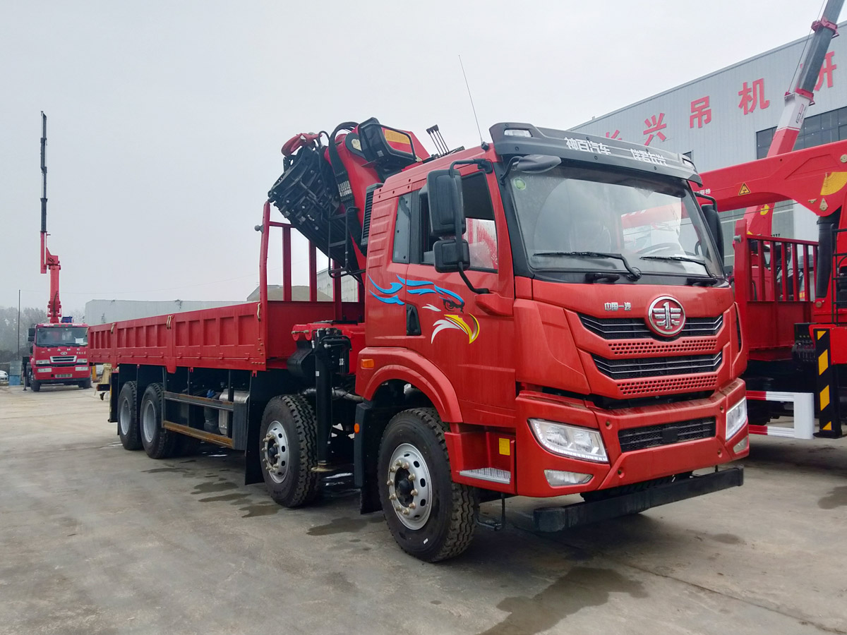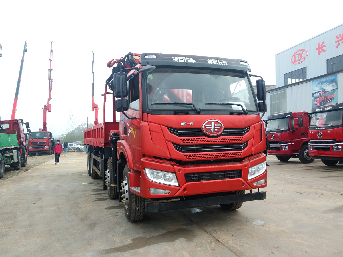 解放悍V駕駛室前四后八上裝三一25噸折臂式吊機