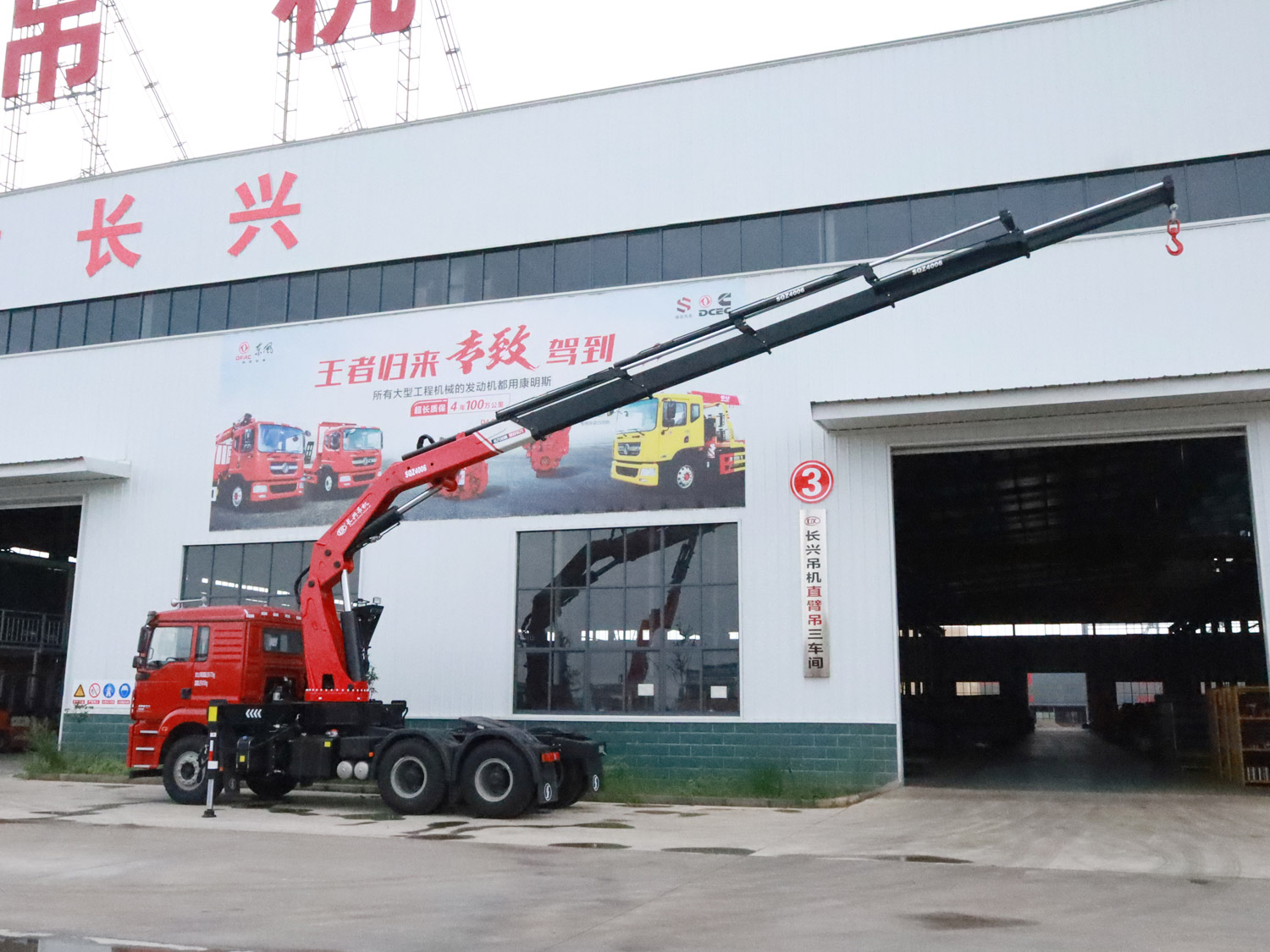 陜汽德龍新M3000駕駛室前四后八上裝長(zhǎng)興35噸折臂式吊機(jī)