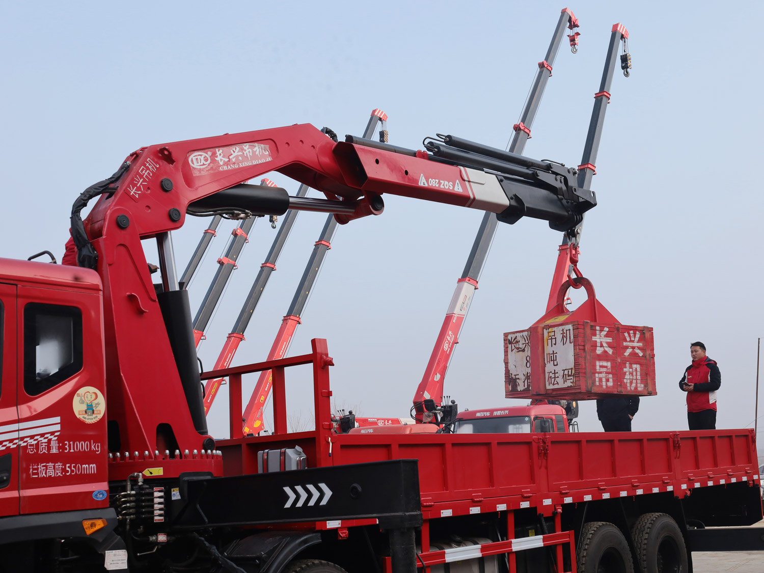 陜汽德龍新M3000駕駛室前四后八上裝長興25噸折臂式吊機