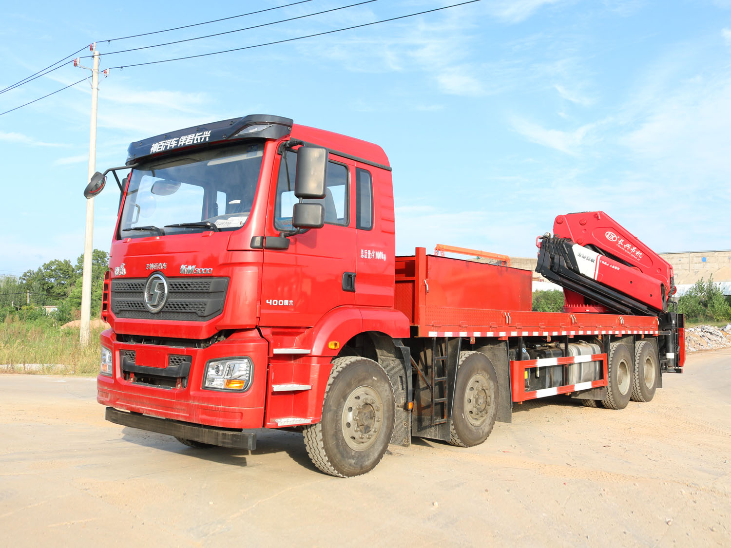 陜汽德龍新M3000駕駛室前四后八上裝長(zhǎng)興35噸折臂式吊機(jī)