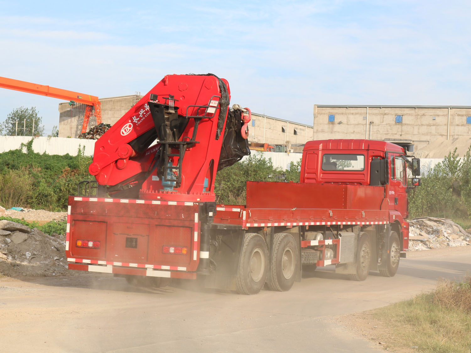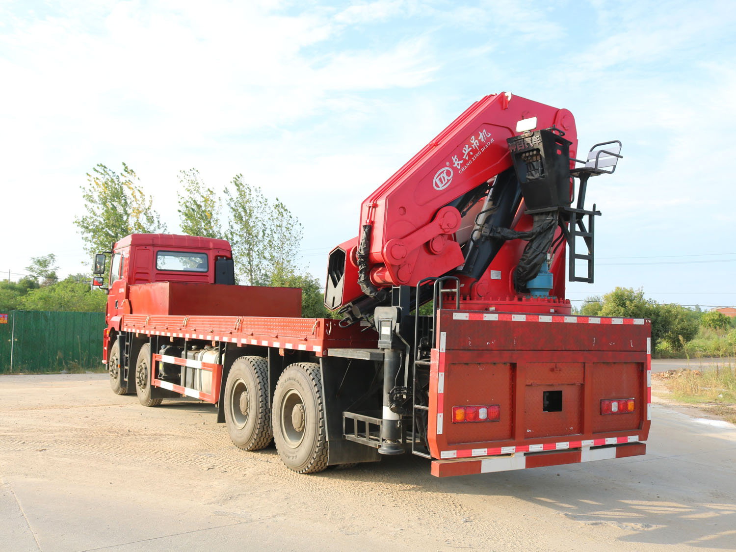 陜汽德龍新M3000駕駛室前四后八上裝長(zhǎng)興25噸折臂式吊機(jī)