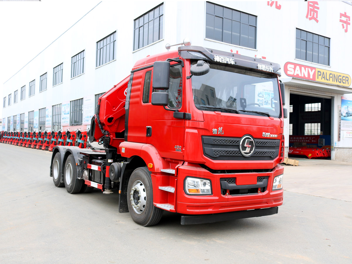 陜汽德龍新M3000駕駛室前四后八上裝長(zhǎng)興25噸折臂式吊機(jī)