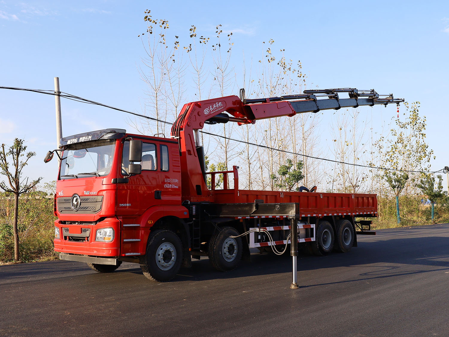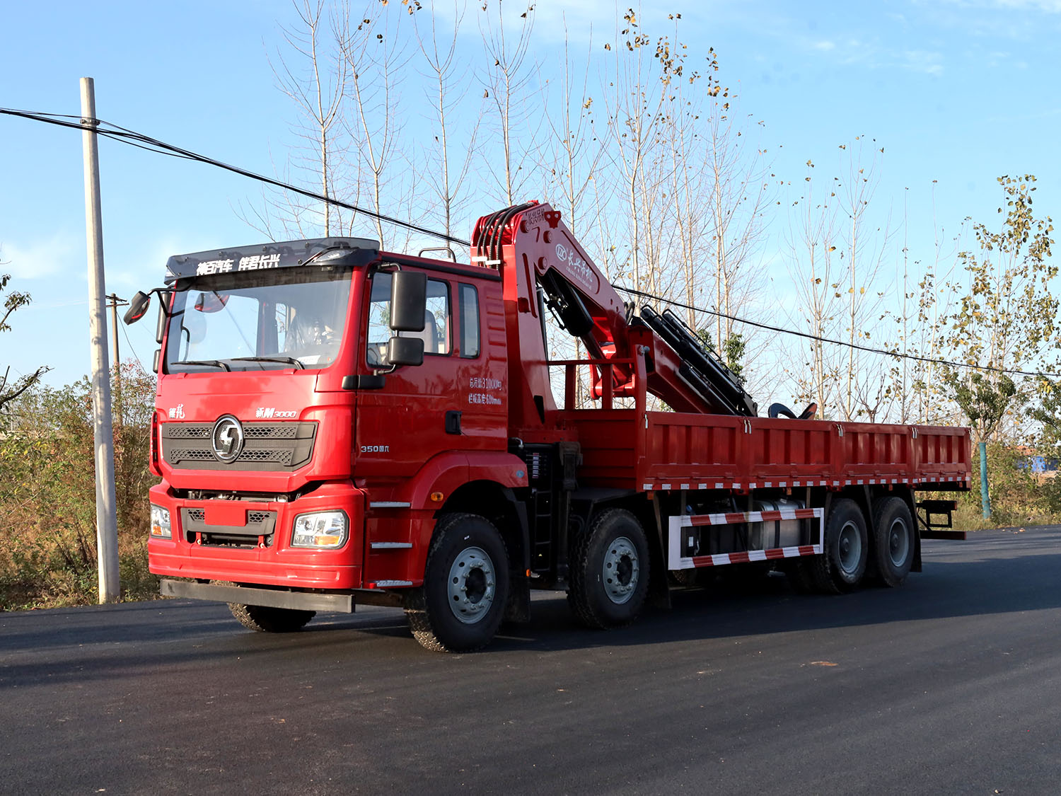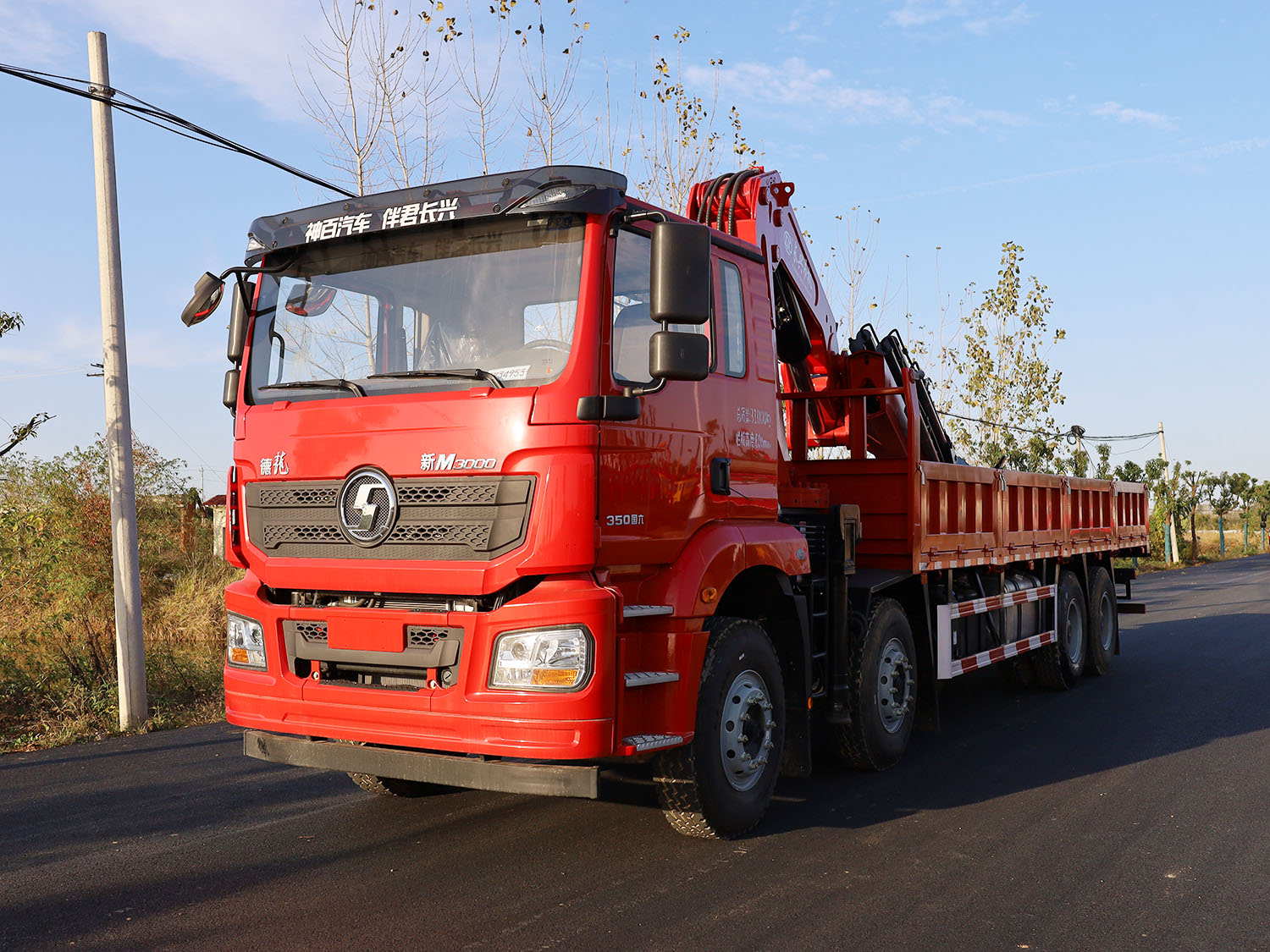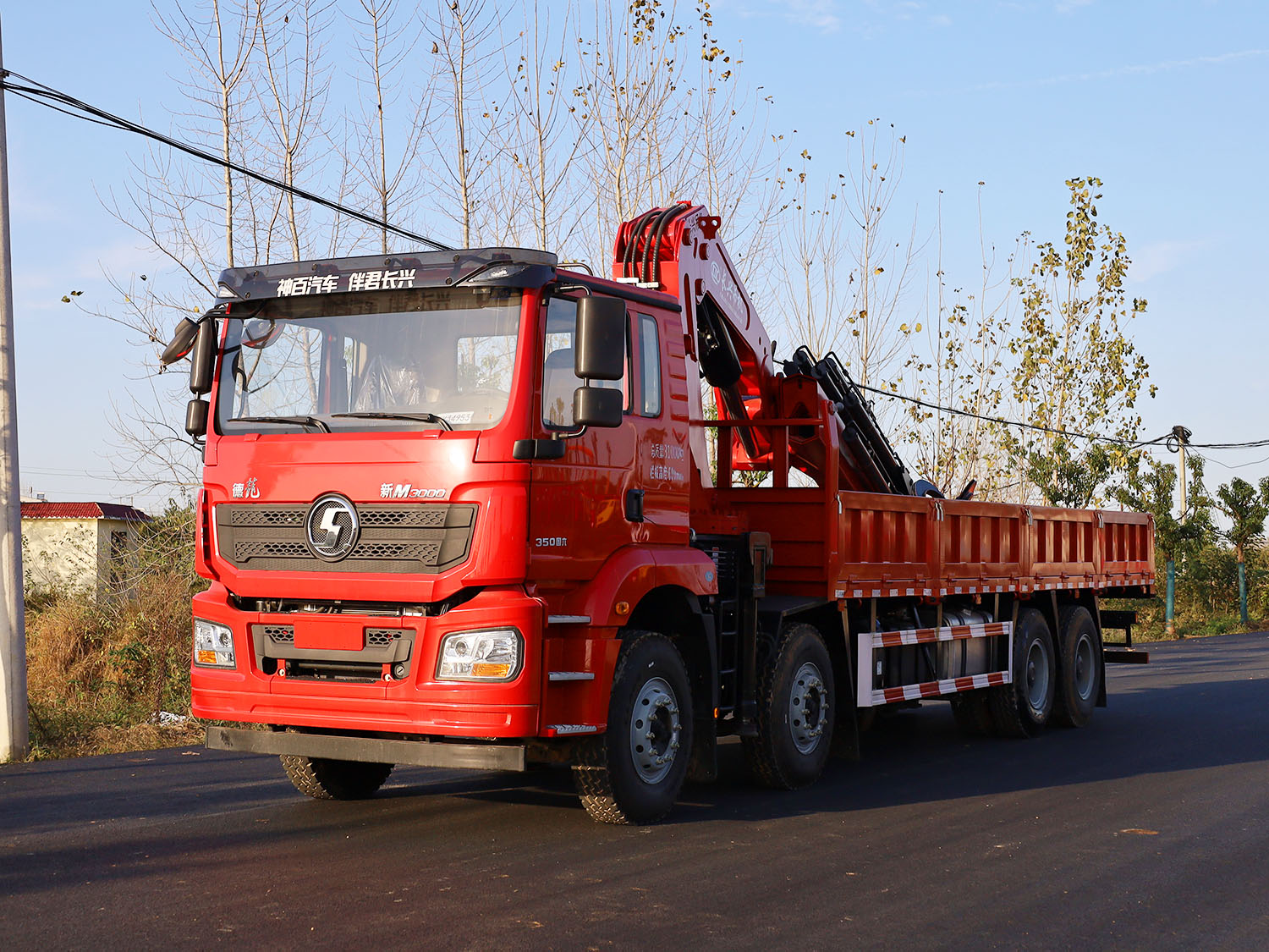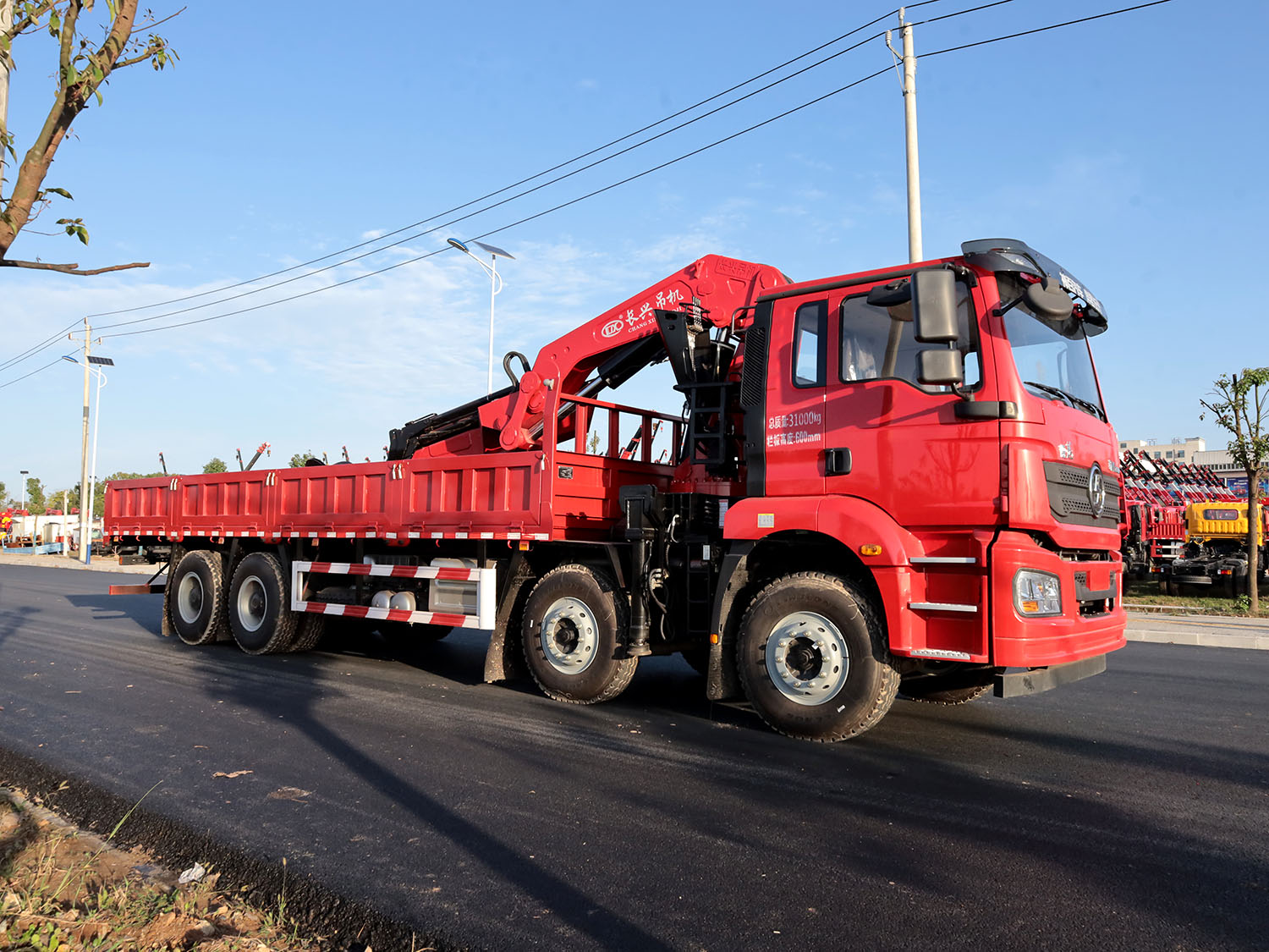 陜汽德龍新M3000駕駛室前四后八上裝長興35噸折臂式吊機(jī)