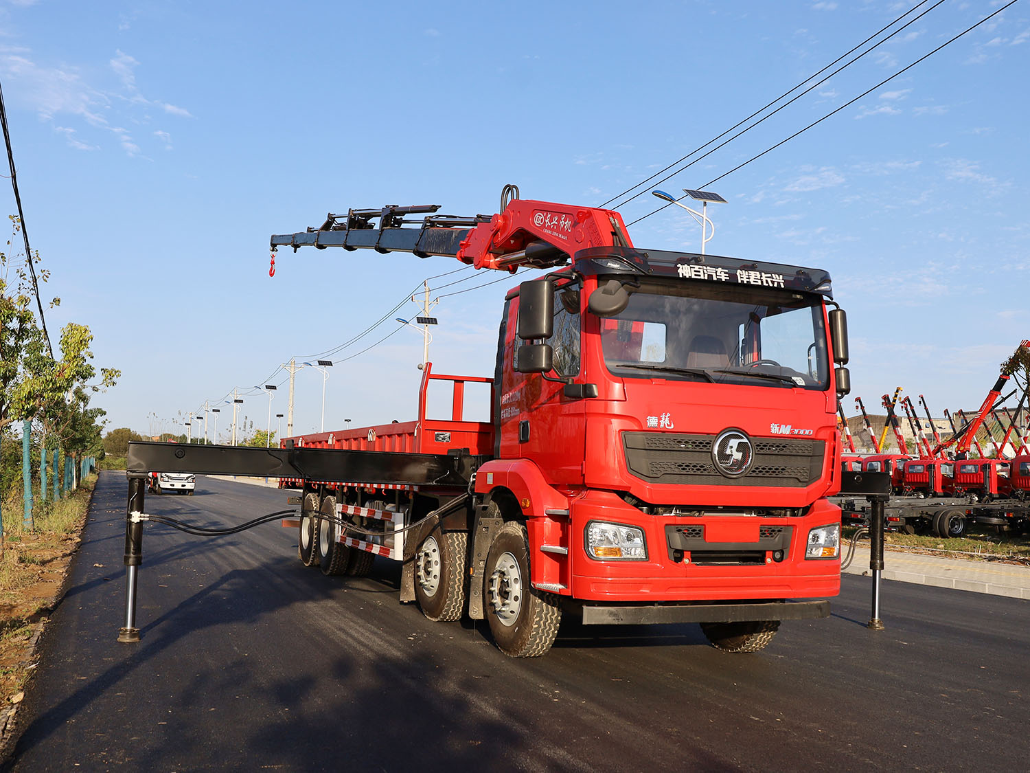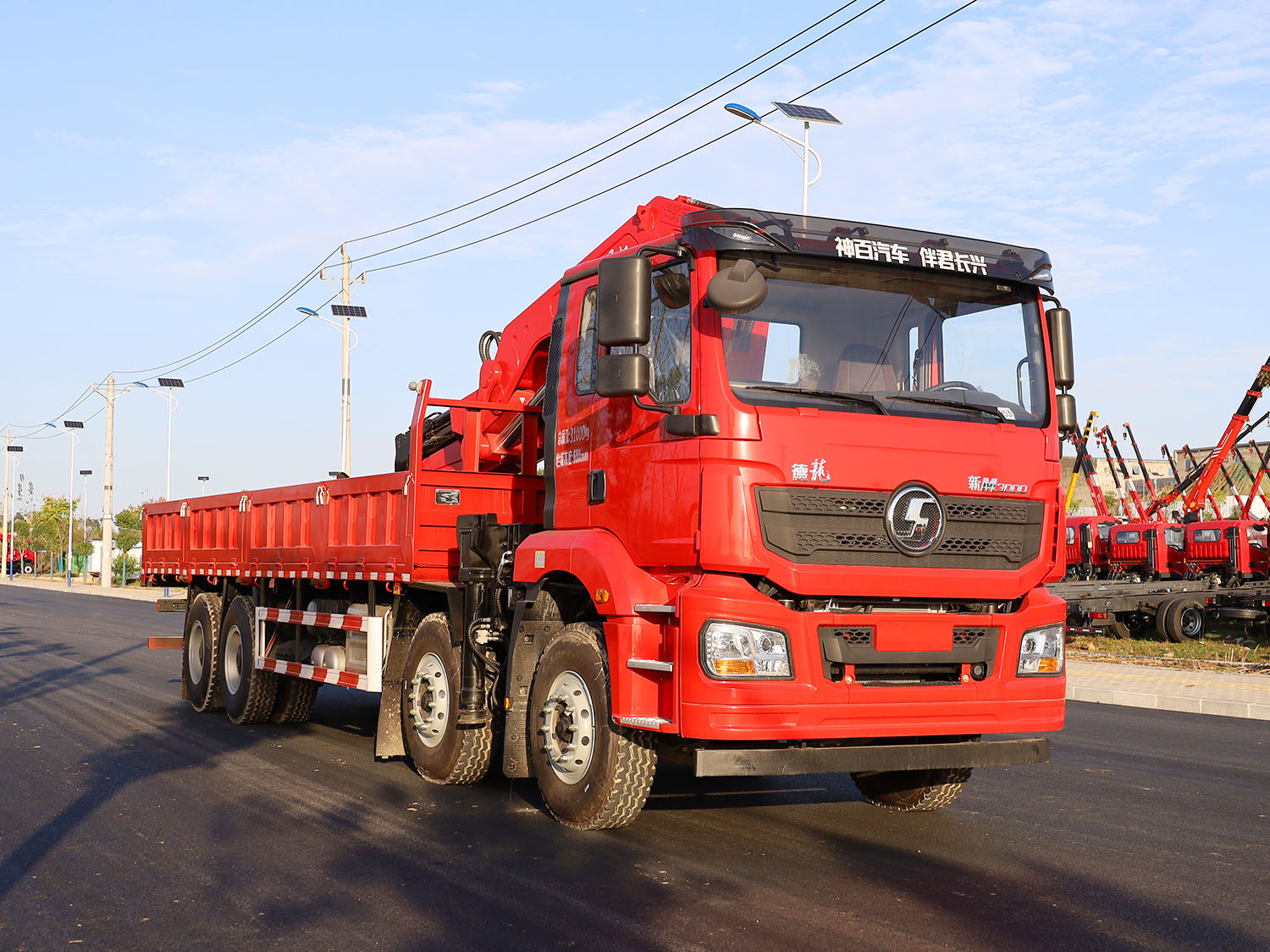 陜汽德龍新M3000駕駛室前四后八上裝長興25噸折臂式吊機(jī)
