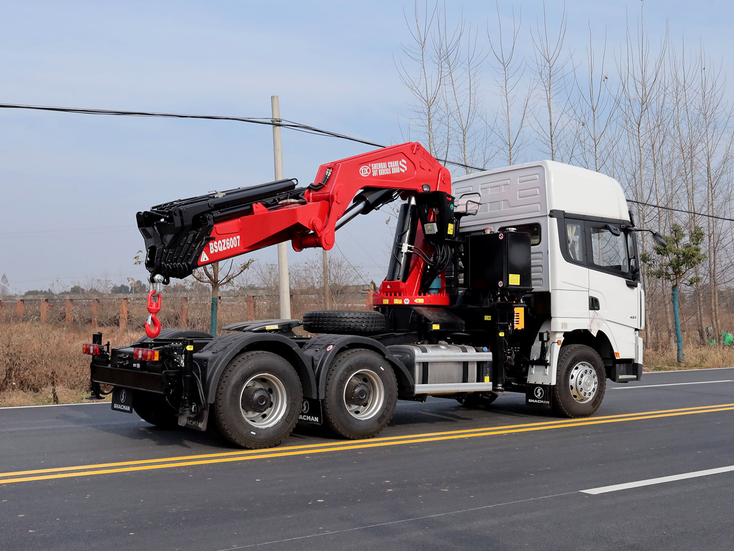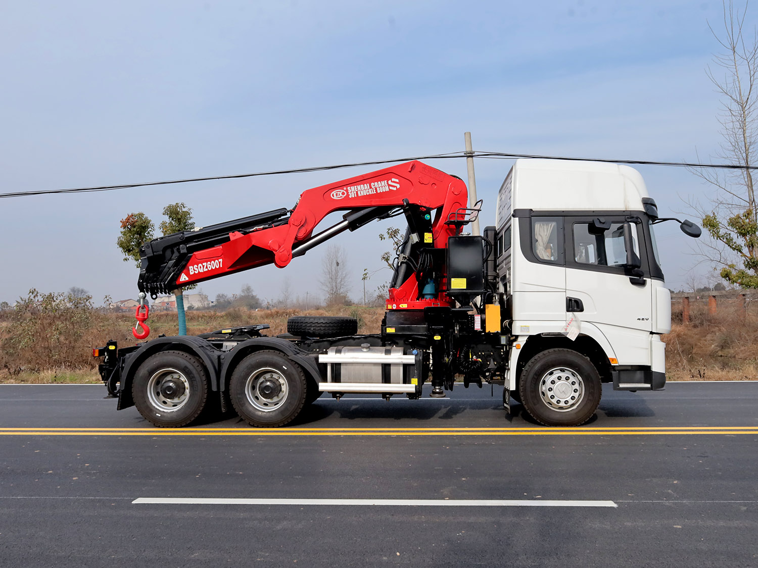陜汽德龍X3000牽引頭上裝長興30噸折臂式吊機