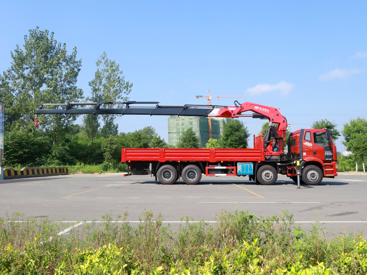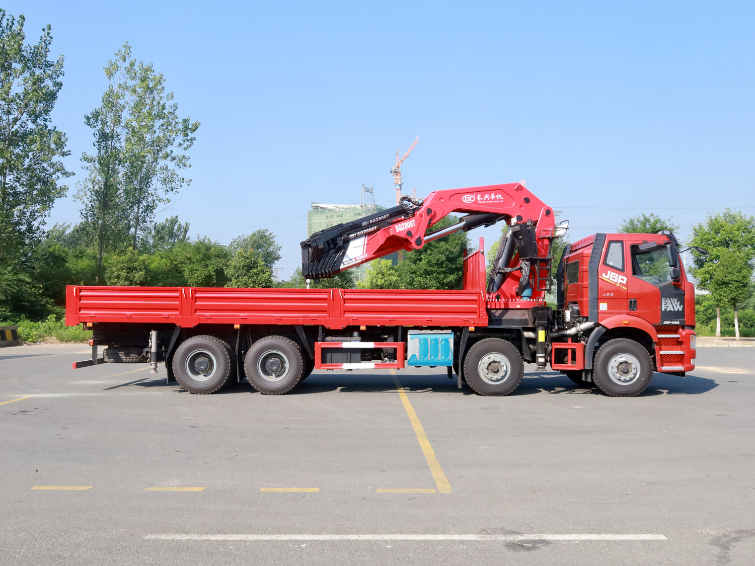 陜汽德龍新M3000駕駛室前四后八上裝長(zhǎng)興25噸折臂式吊機(jī)
