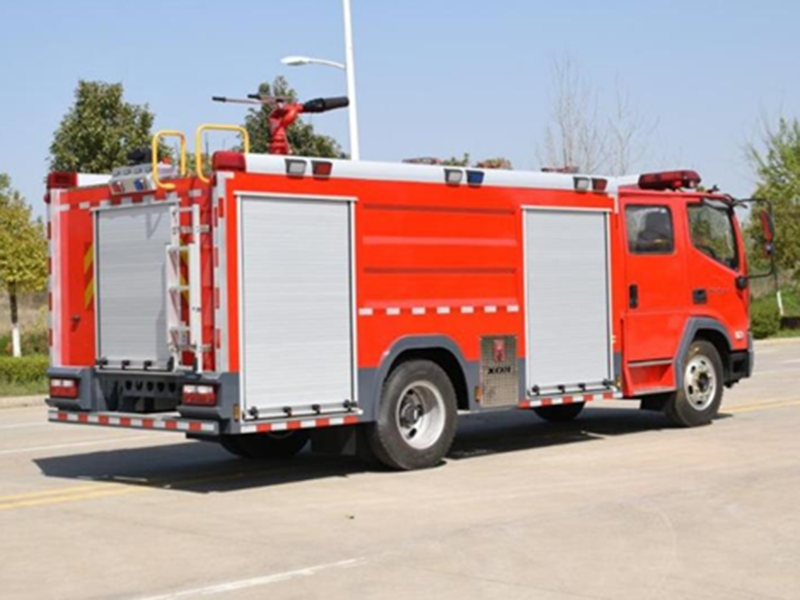 福田泡沫消防車是由二類汽車底盤(pán)、罐體、水泵、管路、儀表電路系統(tǒng)等部件組成, 該車裝配鋁合金后爬梯(可拆卸),泵房在整車尾部,罐體為鋼板焊接式,水罐材質(zhì)為