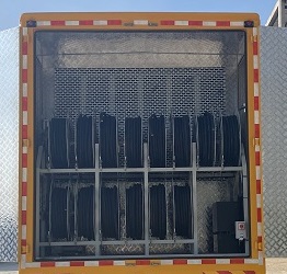 該車裝備發(fā)電機(jī)組,電纜絞盤等,主要用于應(yīng)急供電.側(cè)面防護(hù)裝置為裙板結(jié)構(gòu),材料為Q235A碳鋼,后部防護(hù)裝置材料:Q235A碳鋼.連接方式:采用焊接連接.后部防護(hù)斷面尺寸(mm):120×60,后部防護(hù)離地高度(mm):460.ABS型號/生產(chǎn)廠家:3631010-C2000/東科克諾爾商用車制動系統(tǒng)(十堰)有限公司,ABS 8/東科克諾爾商用車制動系統(tǒng)(十堰)有限公司,4460046450/采埃孚商用車系統(tǒng)(青島)有限公司.整車長/軸距/前懸/后懸(mm)對應(yīng)關(guān)系為:11200/5350+1350/1500/3000,11200/5350+1350/1480/3020,10850/5350+1350/1500/2650,10850/5350+1350/1480/2670,10530/4350+1350/1500/3330,10530/4350+1350/1480/3350,10100/4350+1350/1500/2900,10100/4350+1350/1480/2920,9990/4350+1350/1500/2790,9990/4350+1350/1480/2810.隨底盤選裝限速裝置時,限速89km/h.隨底盤選裝駕駛室.選裝升降照明燈.該燈僅在停車狀態(tài)下起夜間照明作用,行駛過程中不能點(diǎn)亮. |