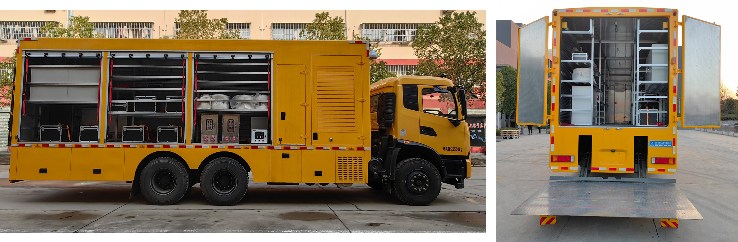 廂體頂部封閉,不可開啟;該車配備裝備架,主要用于運輸應急救援物品或裝備;該車側防護以及后部防護為裙邊結構,后部距地高度為(mm):495;尾板收起狀態(tài)的水平長度(mm):265,尾板質量為540kg;安裝有具有衛(wèi)星定位功能的行駛記錄儀,選裝ETC車載裝置;發(fā)動機/油耗值(L/100km)對應關系為:DDi75E300-60/32.5;ABS型號/生產廠家:3631010-C2000/東科克諾爾商用車制動系統(tǒng)(十堰)有限公司,J ABS/焦作博瑞克控制技術有限公司,升降照明燈行駛途中不能開啟,僅作業(yè)時使用。 |