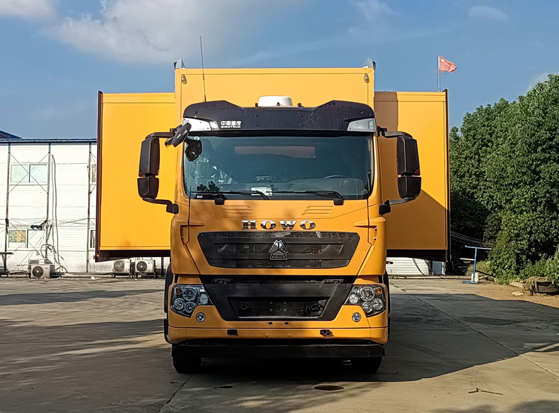 該車主要用于野外住宿,野外宿營(yíng)保障,專用裝置:廂體,臥鋪; 廂體頂部封閉,不可開啟; 整車長(zhǎng)/軸距/后懸對(duì)應(yīng)關(guān)系為(mm):10330/5600/3300,10730/5800/3500; 側(cè)防護(hù)由車身結(jié)構(gòu)代替,后部防護(hù)材質(zhì)采用Q235,焊接連接,截面尺寸寬×高(mm):110×120,下邊緣離地高400mm; ABS系統(tǒng)控制器生產(chǎn)企業(yè)/型號(hào)為威伯科(上海)管理有限公司/4460046300,廣州瑞立科密汽車電子股份有限公司/CM4XL-4S/4M;選裝EBS,EBS系統(tǒng)控制器生產(chǎn)企業(yè)/型號(hào)為威伯科(上海)管理有限公司/EBS3; 僅在駐車狀態(tài)下廂體兩側(cè)可擴(kuò)展,行駛狀態(tài)時(shí)不可擴(kuò)展; 側(cè)面安裝作業(yè)照明燈具,該燈具僅在夜間作業(yè)時(shí)照明使用,行駛狀態(tài)不可點(diǎn)亮; 選裝限速裝置,最高車速(km/h)為89; 選裝內(nèi)部布局樣式。 |