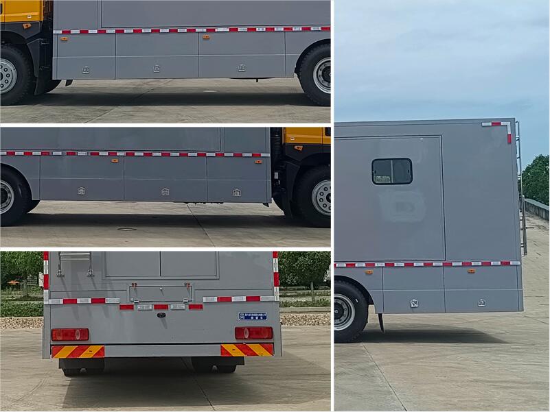 該車主要用于野外住宿,野外宿營(yíng)保障,專用裝置:廂體,臥鋪; 廂體頂部封閉,不可開啟; 整車長(zhǎng)/前懸/軸距/后懸對(duì)應(yīng)關(guān)系為(mm):9920/1250(1410)/5600/3070(2910),9000/1410/5300/2290,8650/1250(1410,1285,1300)/5100/2300(2140,2265,2250),8400/1410(1285)/4700/2290(2415); 側(cè)防護(hù)為裙邊結(jié)構(gòu),后防護(hù)材質(zhì)為Q235,焊接連接,截面尺寸寬×高(mm):60×120,下邊緣離地高495mm; ABS型號(hào):3631010-C2000,J ABS;ABS生產(chǎn)企業(yè):東科克諾爾商用車制動(dòng)系統(tǒng)(十堰)有限公司,焦作博瑞克控制技術(shù)有限公司; 僅在駐車狀態(tài)下廂體兩側(cè)可擴(kuò)展,行駛狀態(tài)時(shí)不可擴(kuò)展. |