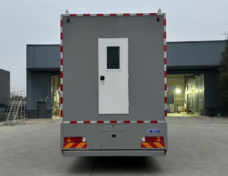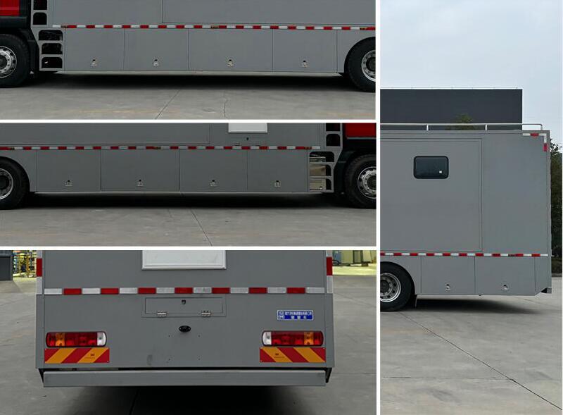 該車主要用于野外住宿,洗漱等野外宿營保障,專用裝置:廂體,臥鋪; 廂體頂部封閉,不可開啟; 僅采用7100mm軸距底盤改裝; 側防護采用裙邊結構代替,后防護材質(zhì)采用Q235,焊接連接,后防護截面尺寸:120mm×100mm,下邊緣離地高420mm; ABS系統(tǒng)控制器生產(chǎn)企業(yè)/型號為采埃孚商用車系統(tǒng)(青島)有限公司/4460046300;選裝EBS,EBS系統(tǒng)控制器生產(chǎn)企業(yè)/型號為采埃孚商用車系統(tǒng)(青島)有限公司/EBS3; 選裝限速裝置,限速89(km/h); 僅在駐車狀態(tài)下廂體兩側可擴展,行駛狀態(tài)時不可擴展,僅選用鋼板彈簧懸架. |