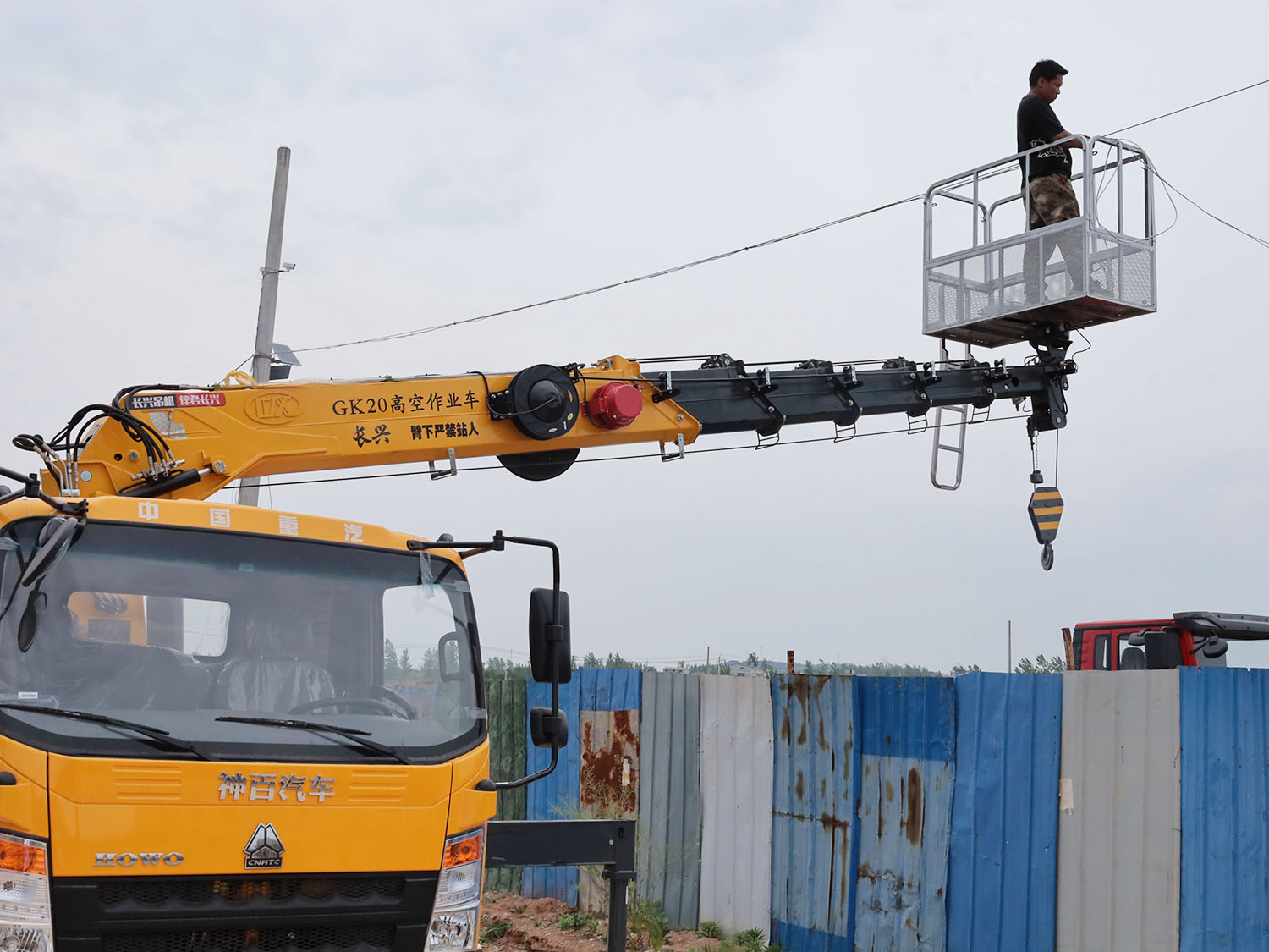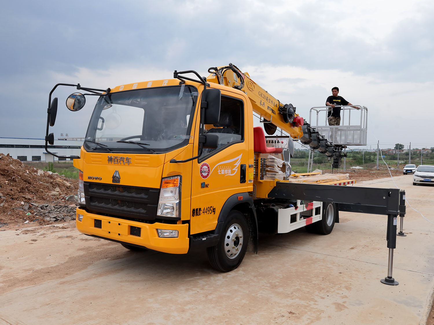 重汽豪沃單排上裝長(zhǎng)興5噸直臂式吊機(jī)(帶高空作業(yè)功能)