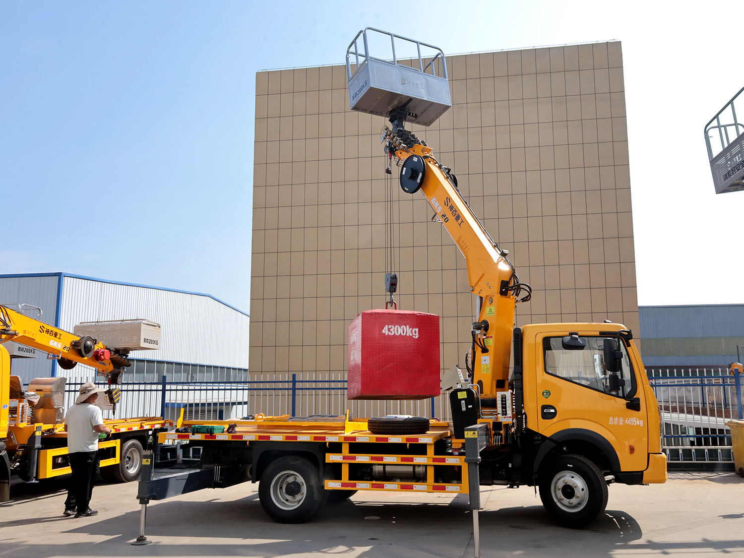 重汽豪沃單排上裝長興5噸直臂式吊機(jī)(帶高空作業(yè)功能)